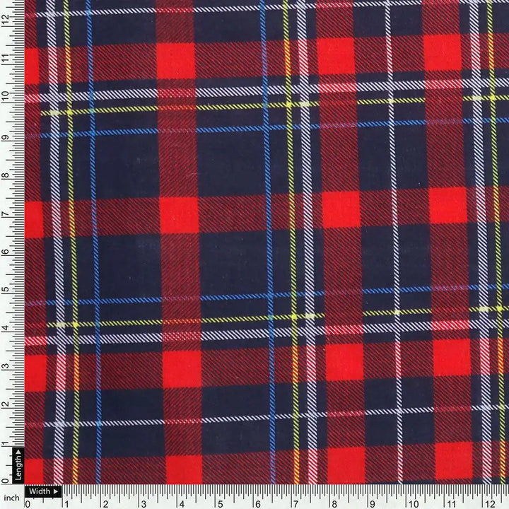 Gingham Pattern With Red And Blue Colour Digital Printed Fabric - Pure Cotton