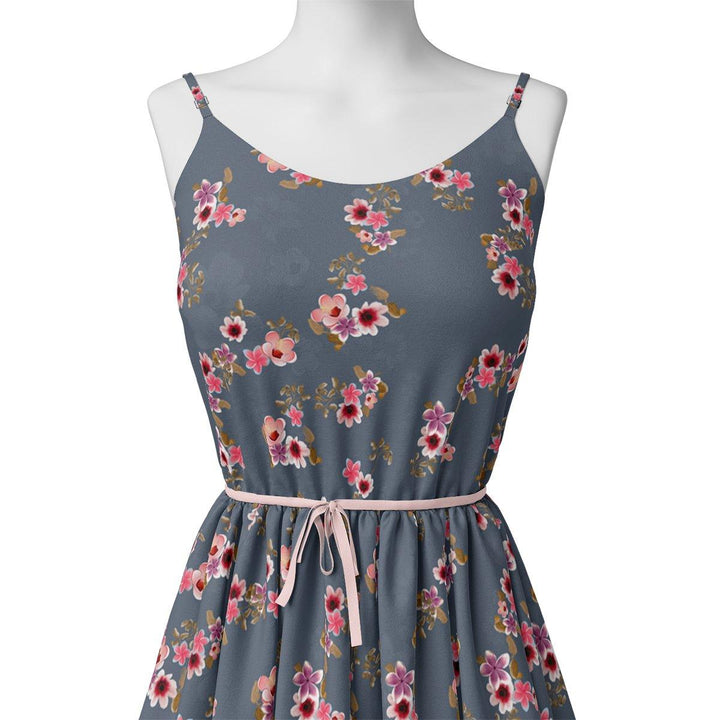 Tiny Flowers With Metal Grey Digital Printed Fabric