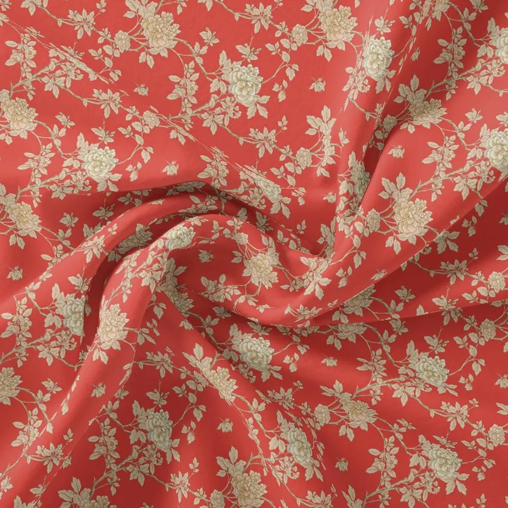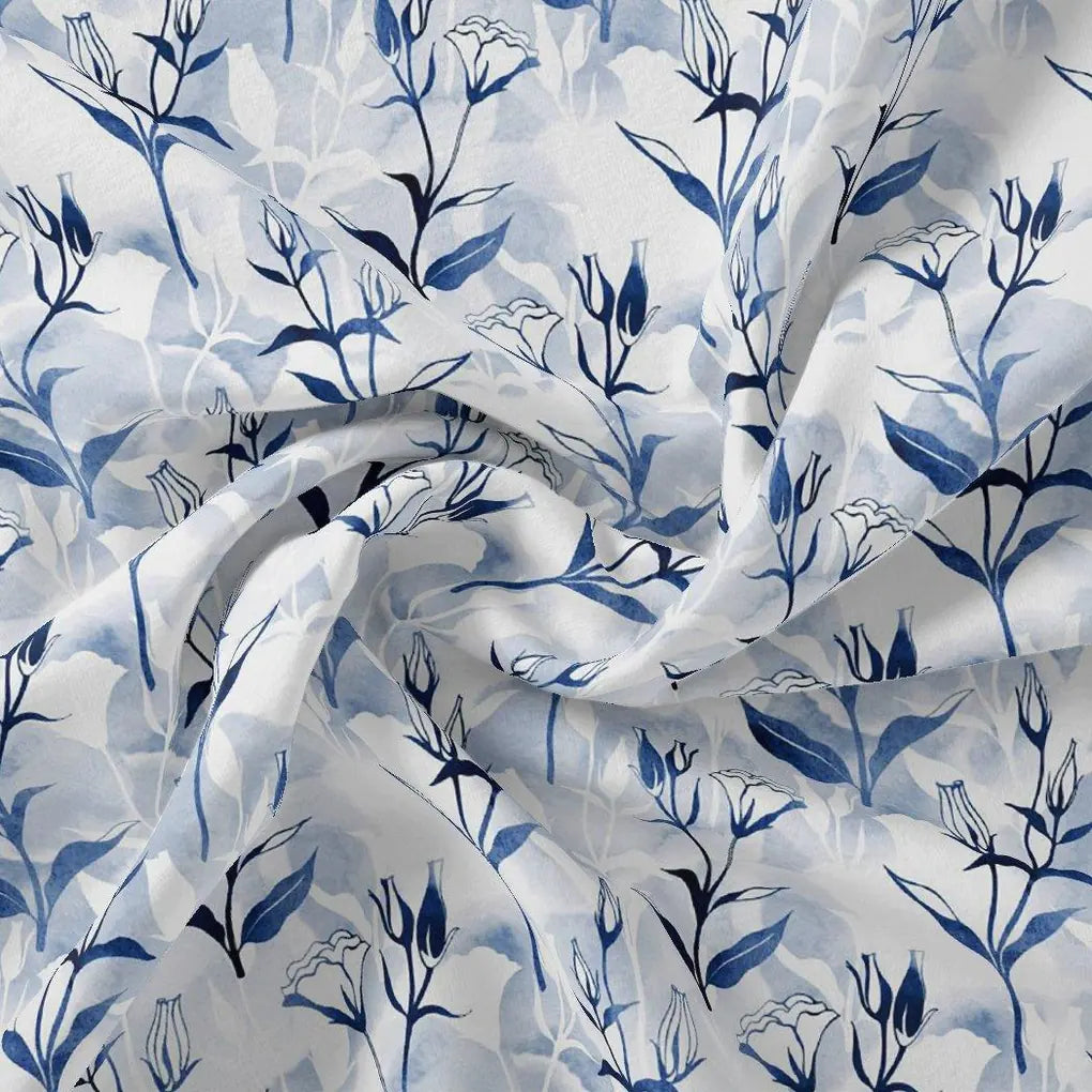 Western Flowers Small Leaves Digital Printed Fabric