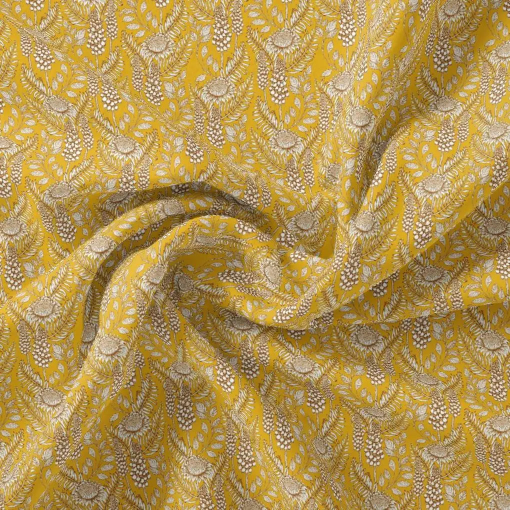 Silver Baroque Flower With Yellow Background Digital Printed Fabric