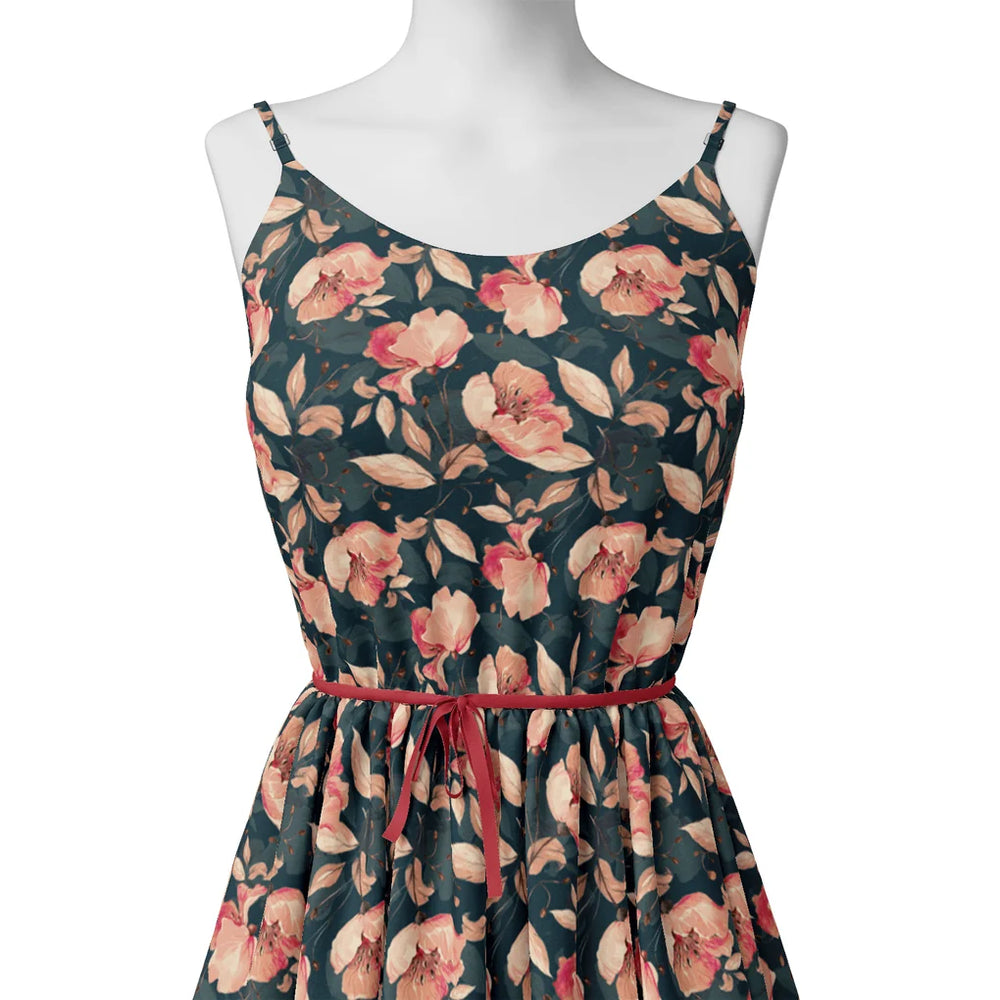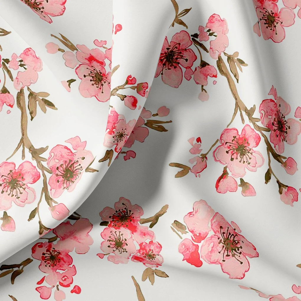Pink Flower And Branch Digital Printed Fabric