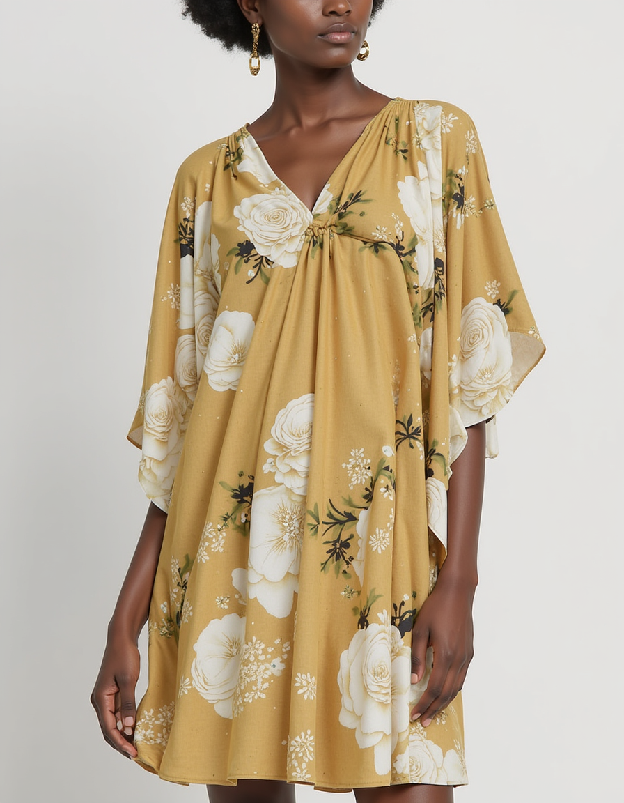 Gorgeous yellow Cotton digital printed fabric by FAB VOGUE Studio