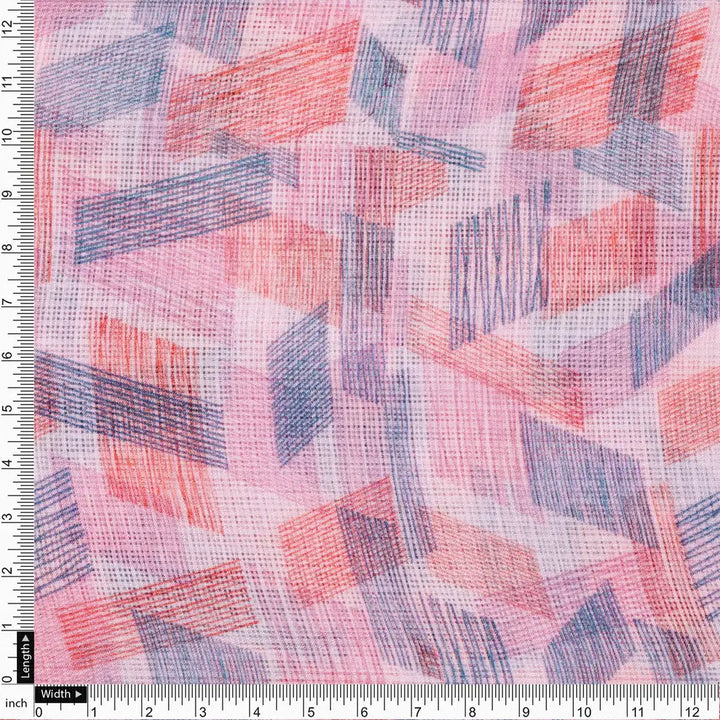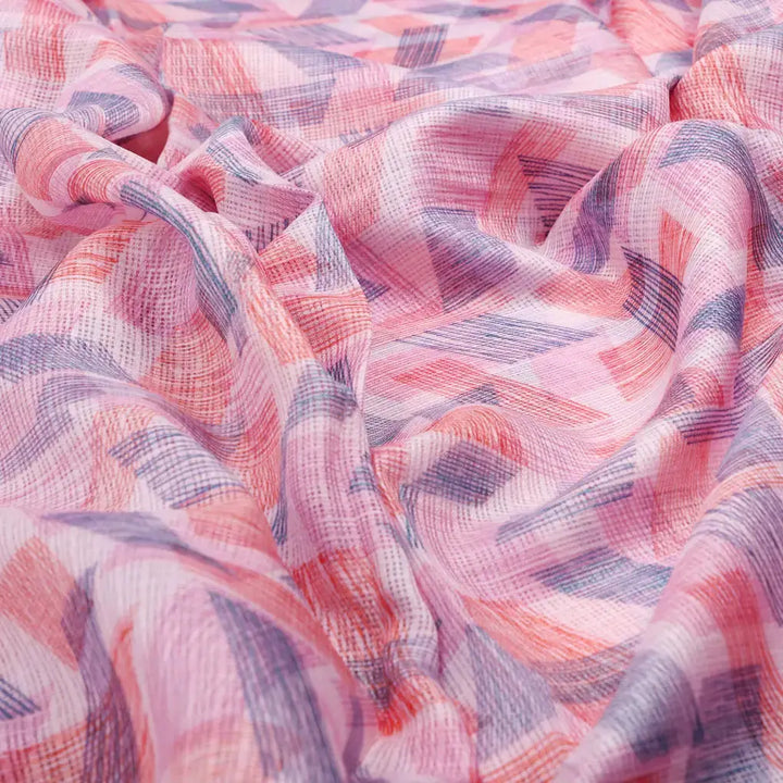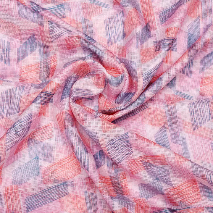Immerse yourself in the vibrant world of Abstract Print Digital Printed Kota Doria Fabric by FAB VOGUE Studio. Crafted from the delicate weave of Kota Doria cotton, this fabric showcases an enchanting abstract design in an eye-catching palette of orange, blue, and pink. Its intricate patterns and vibrant hues will elevate any garment or home decore project, adding a touch of artistry and sophistication.