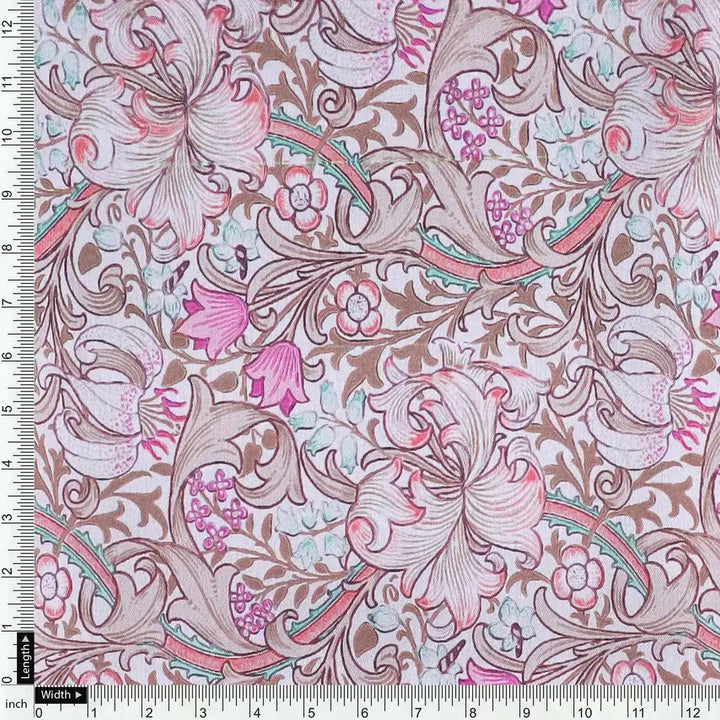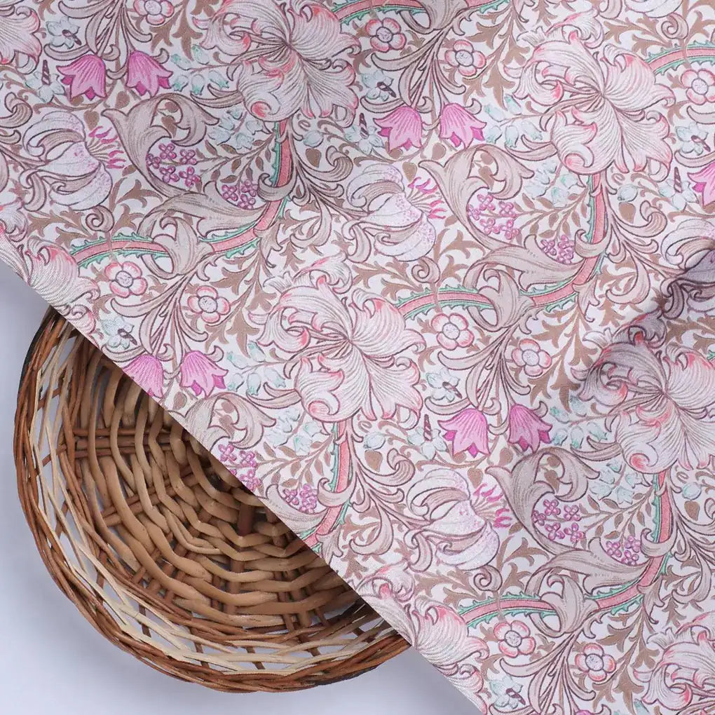 Are you looking for a festive and unique fabric for your next project? Look no further than the Festive Curve Design Pink Doted Flower Japan Satin Digital Printed Fabric from FAB VOGUE Studio. This stunning fabric is crafted from high-quality polyester and features a beautiful floral pattern in a rich brown color. Perfect for a variety of projects, this fabric is sure to add a touch of elegance to any creation.