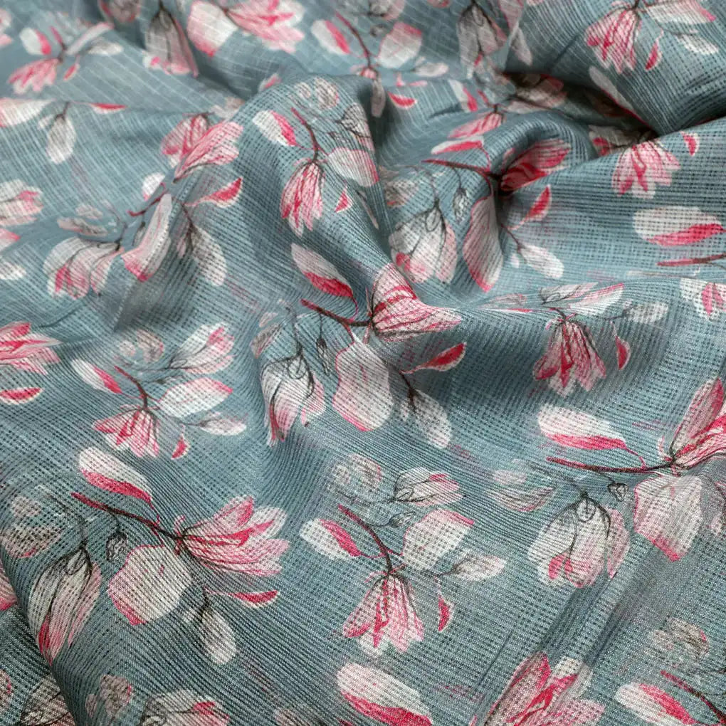 Gorgeous Floral Kota Doria Digital Print Fabric for Classy Outfits