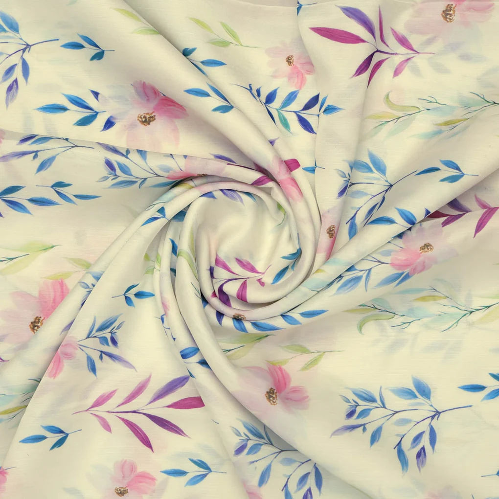 This linen fabric is a lightweight and soft material that is perfect for a variety of sewing projects. It has a beautiful floral print in shades of pink, blue, and purple on a cream background. The fabric is easy to sew and drapes beautifully. This fabric is perfect for dresses, tops, skirts, scarves, and other accessories. It can also be used for home décor projects such as tablecloths, napkins, and pillow covers.