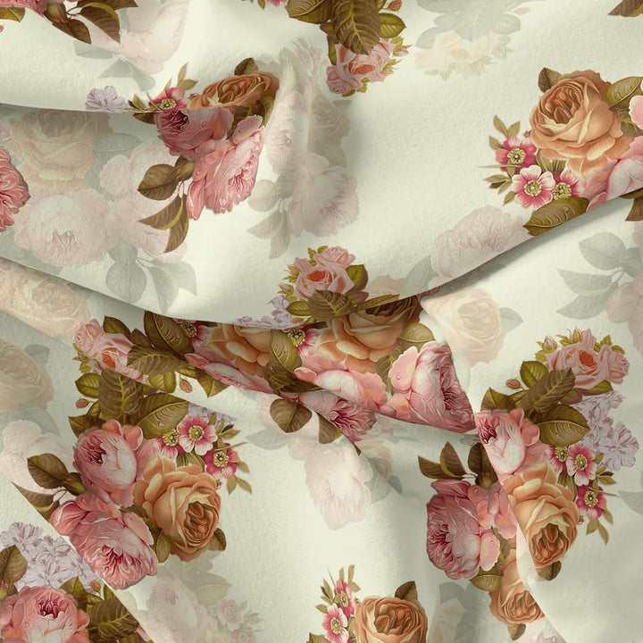 Beautiful Floral Golden Roses With Shiny Digital Printed Fabric - Poly Muslin