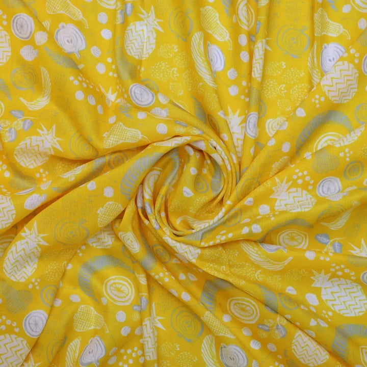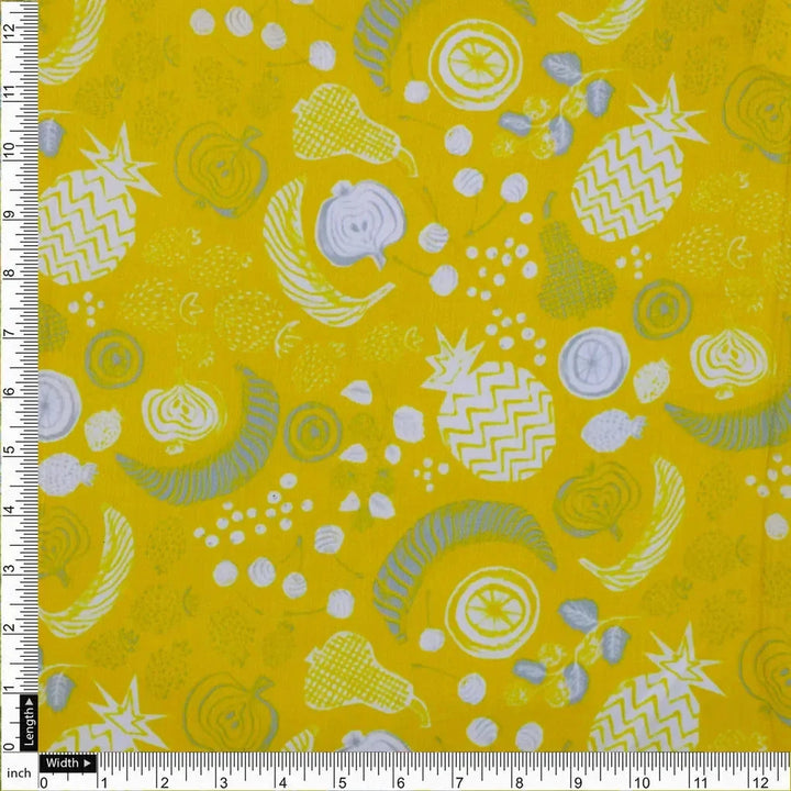 Quirky Fruits and Shapes Printed Muslin Fabric
