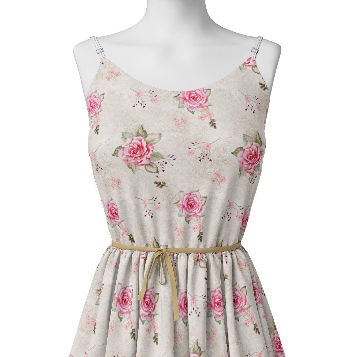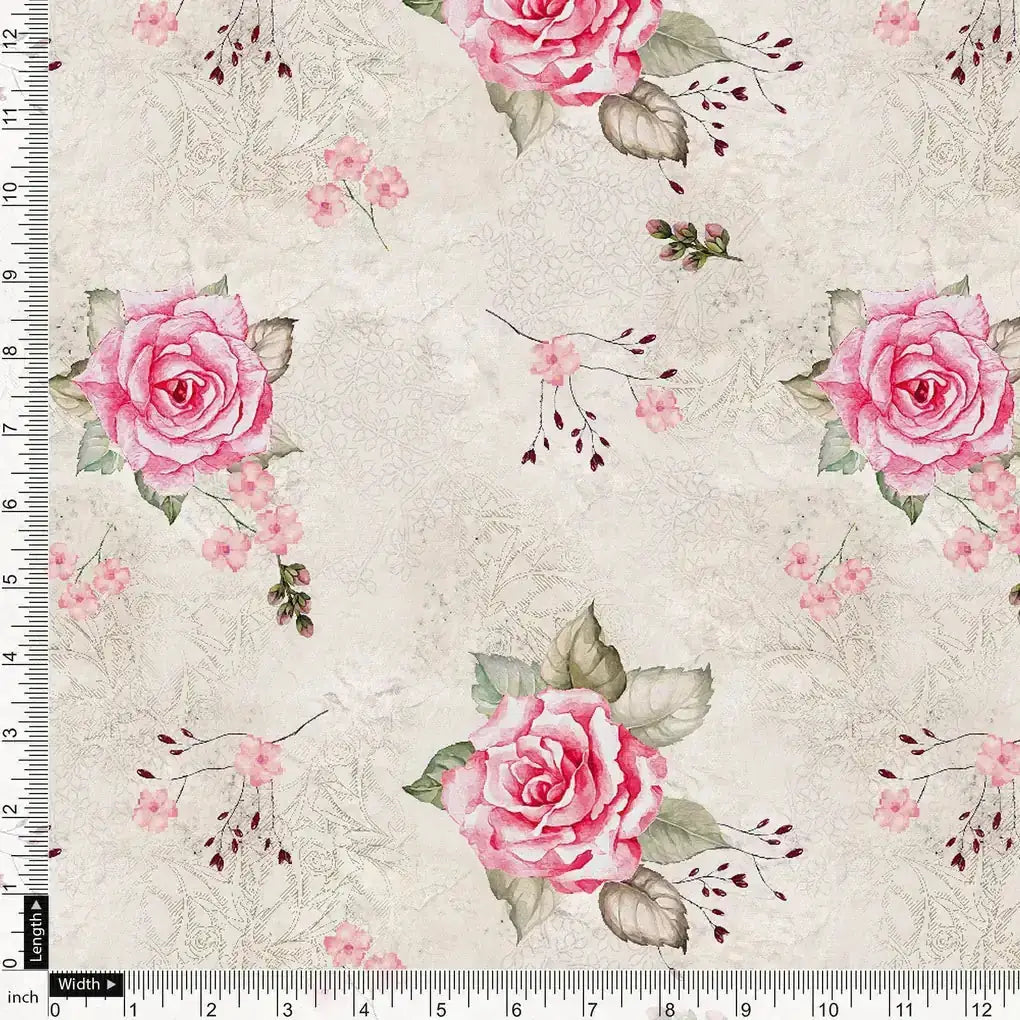 Beautiful Floating Pink Rose Digital Printed Fabric