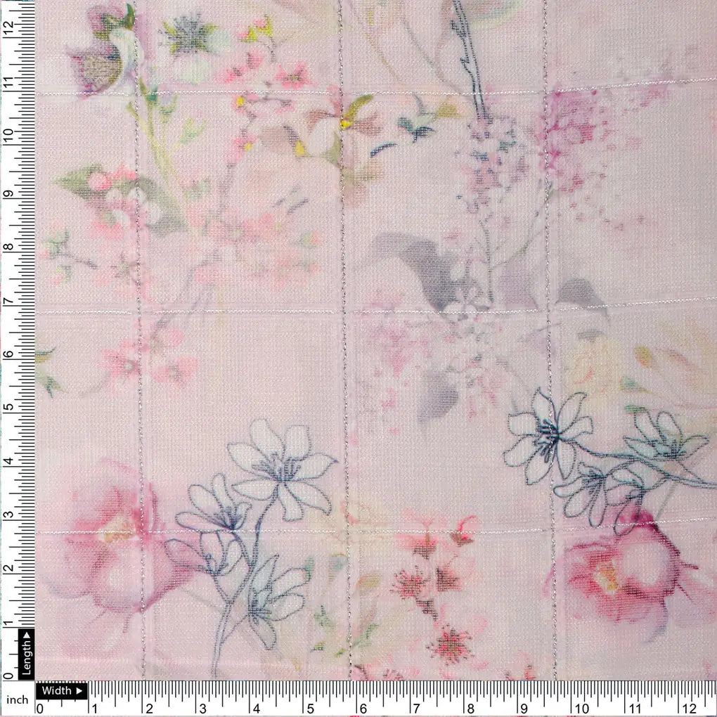 FAB VOGUE Studio Digital Printed Linen Look Polyester Fabric - Pink Floral