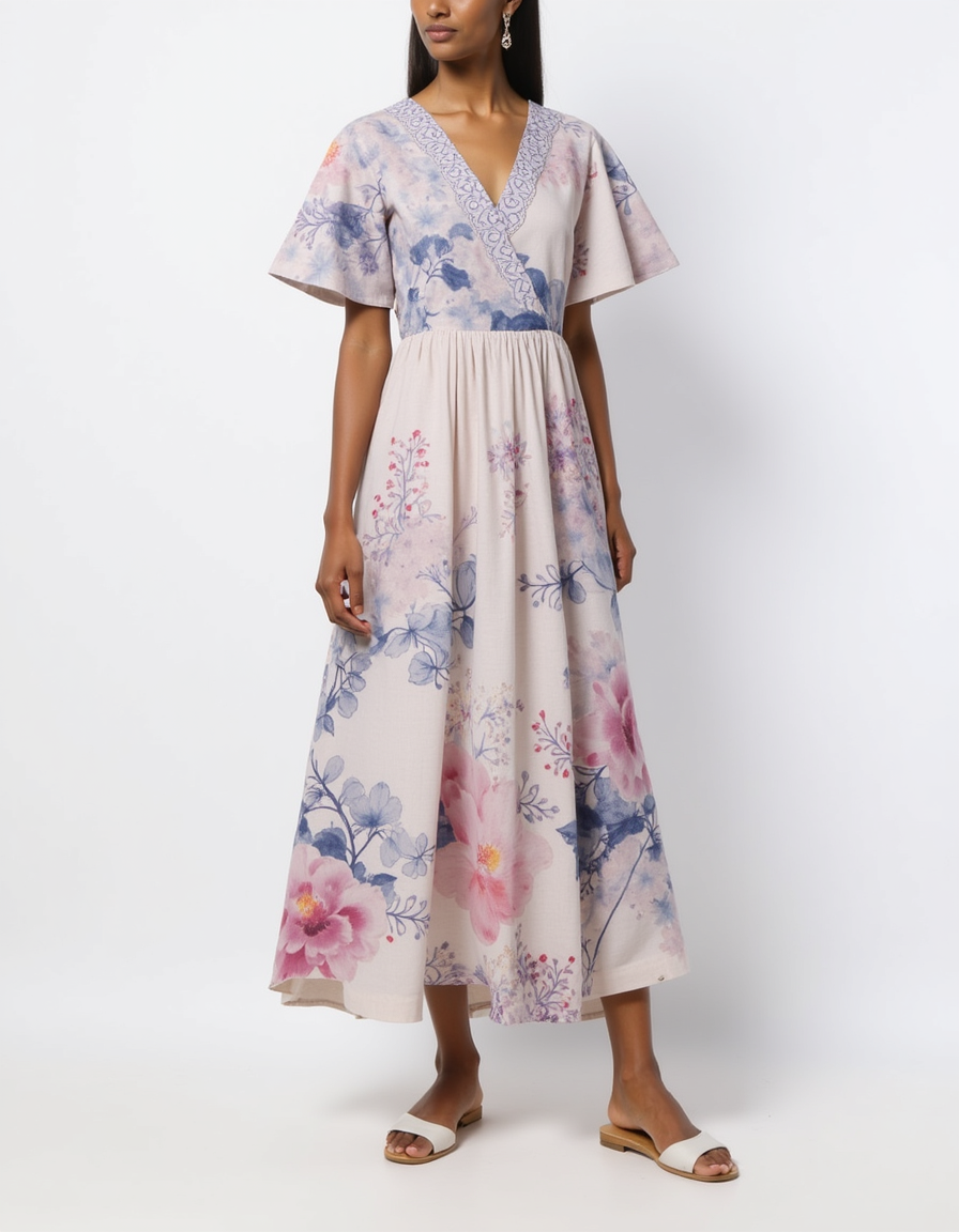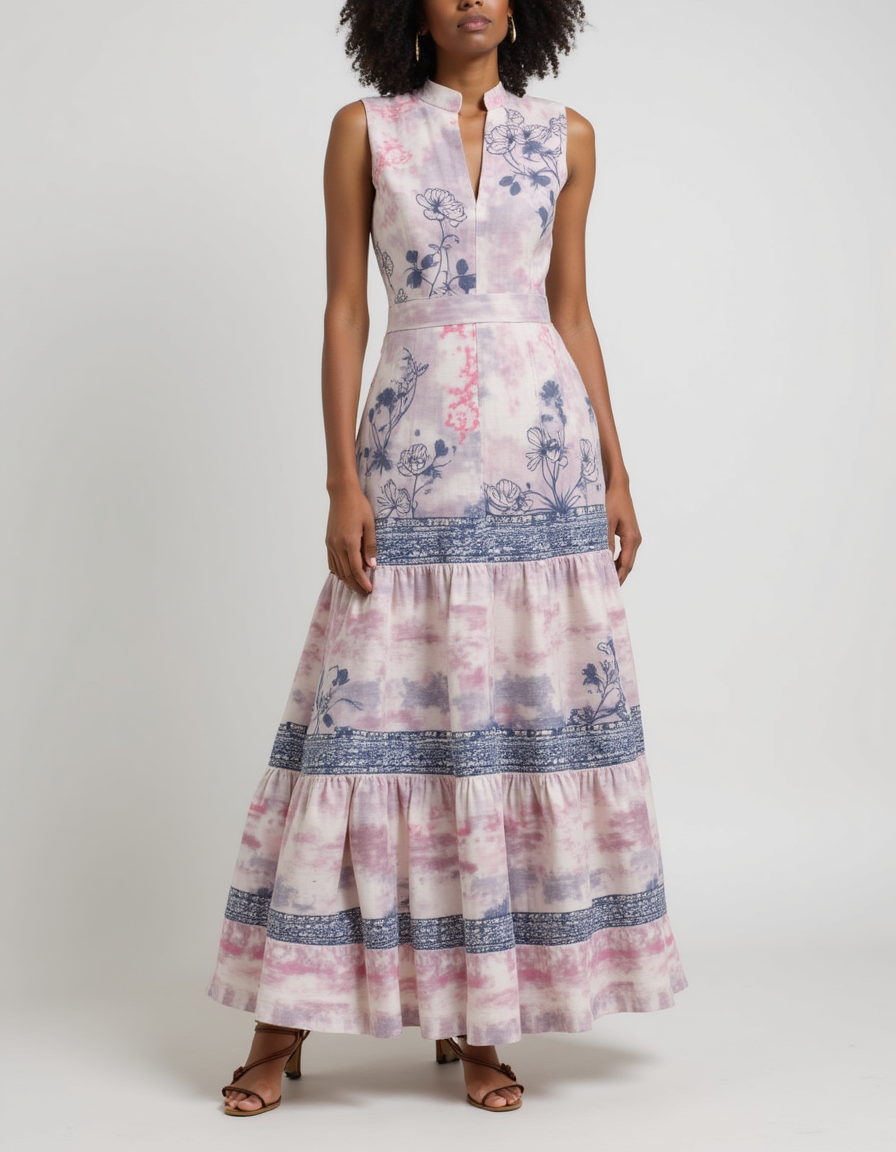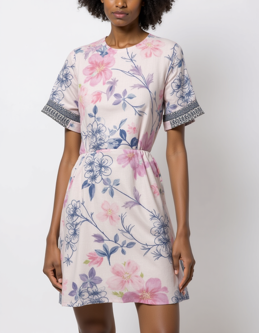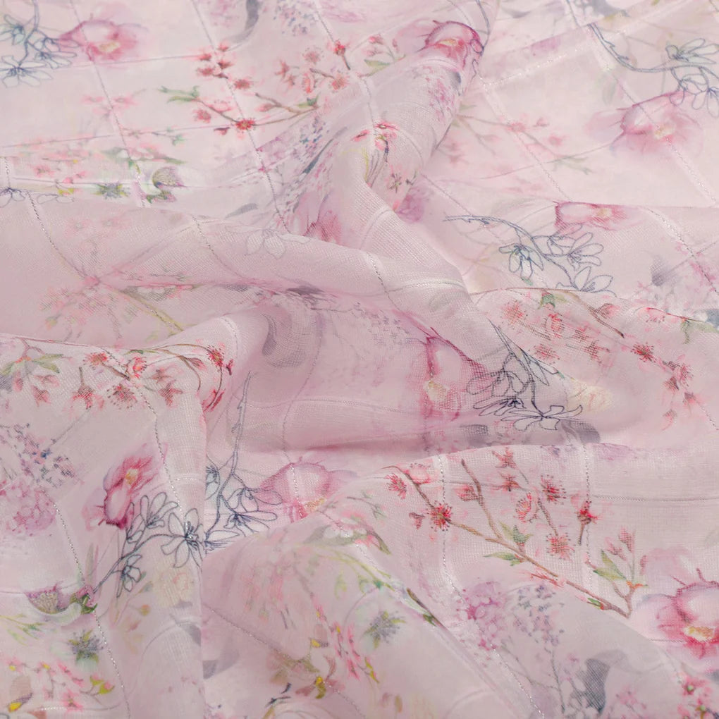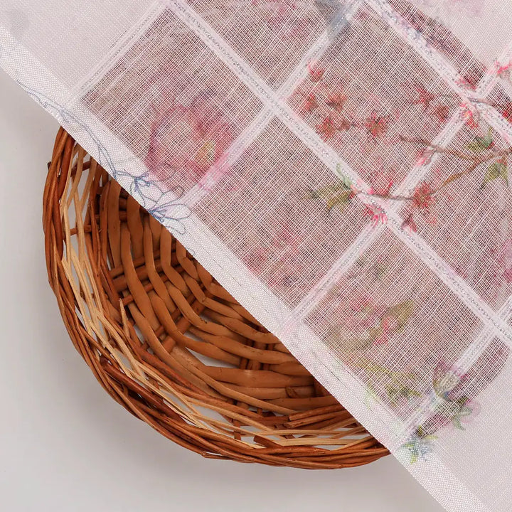 Elevate your sewing projects with this exquisite digital printed linen look fabric from FAB VOGUE Studio. Crafted from high-quality polyester, this fabric boasts a delicate, lightweight feel and a beautiful drape. The charming pink floral pattern adds a touch of elegance and sophistication to any creation. Its versatility makes it perfect for a wide range of projects, from breezy summer dresses and flowy tops to chic home décor accents and crafting projects. Experience the artistry and quality that FAB VOGUE Studio is known for with this stunning fabric.