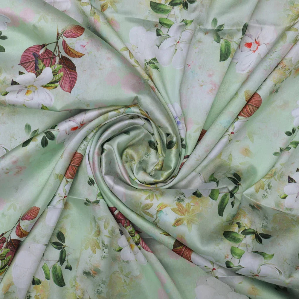 Gorgeous green and white digital printed chiffon fabric by FAB VOGUE Studio