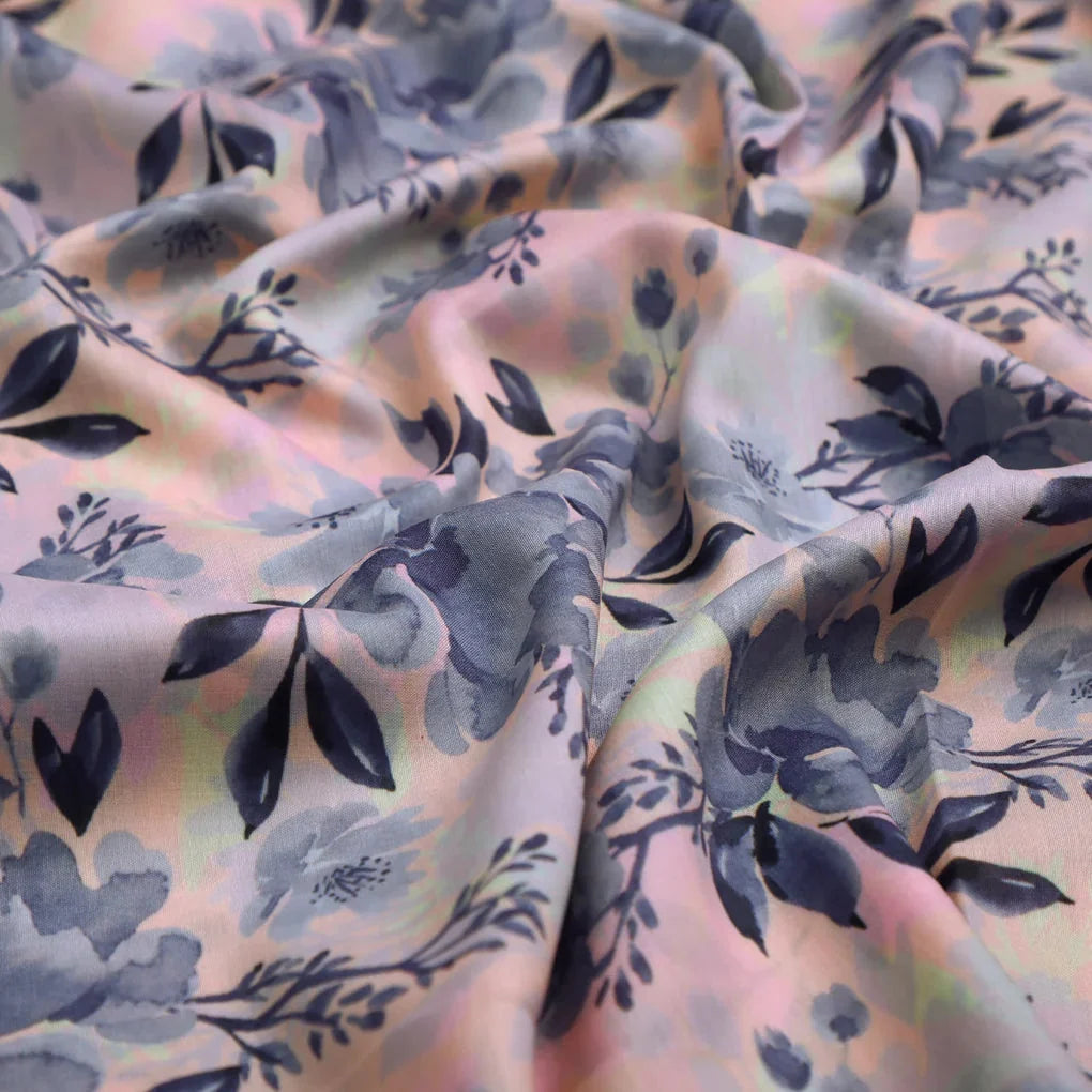 FAB VOGUE Studio Digital Printed Linen Fabric - Peach Floral Pattern