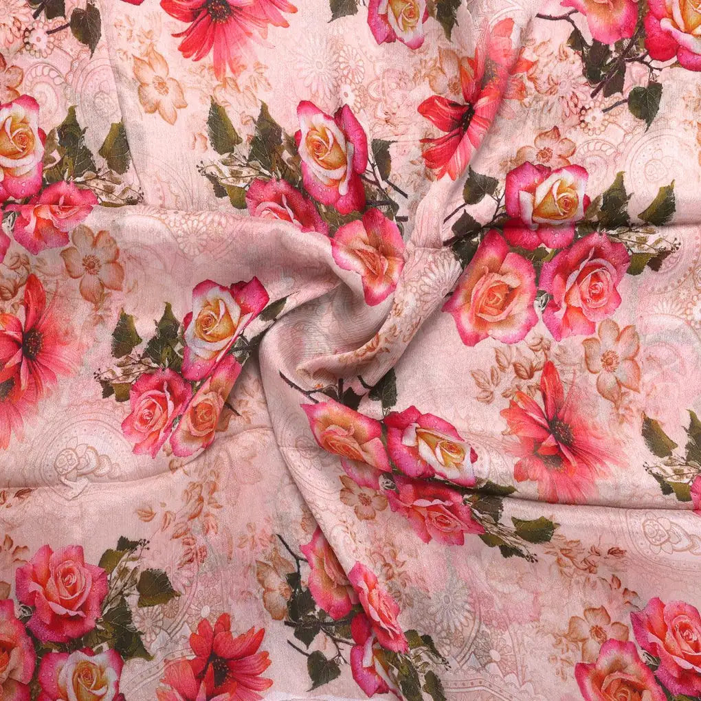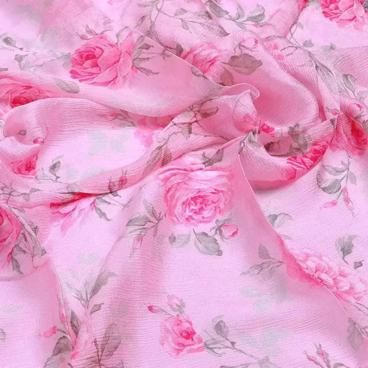 Pink Rose Allover Digital Printed Fabric - Pure Chinon