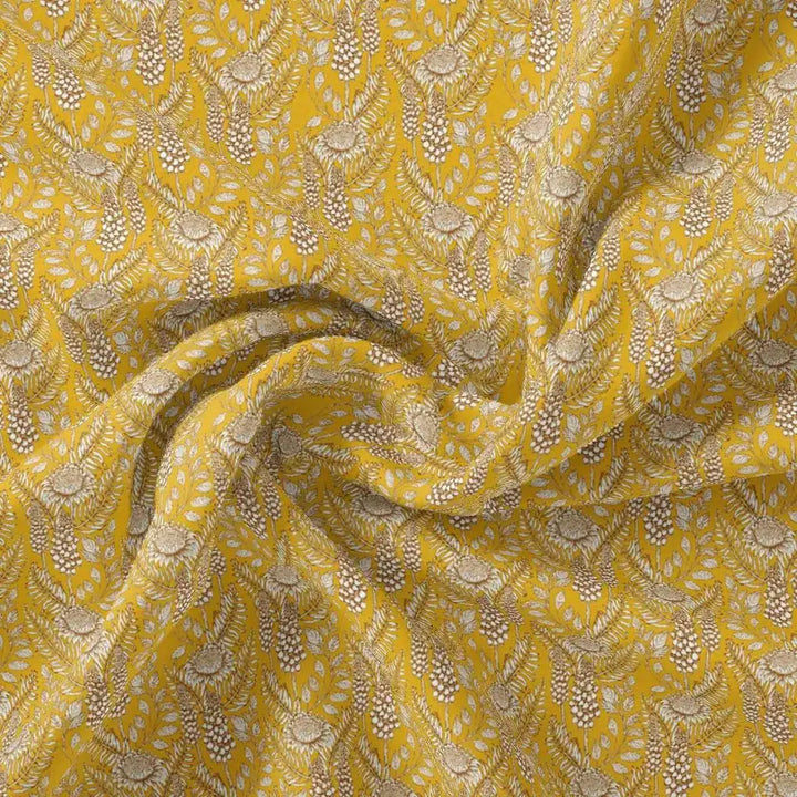 Silver Baroque Flower With Yellow Background Digital Printed Fabric - Pure Cotton