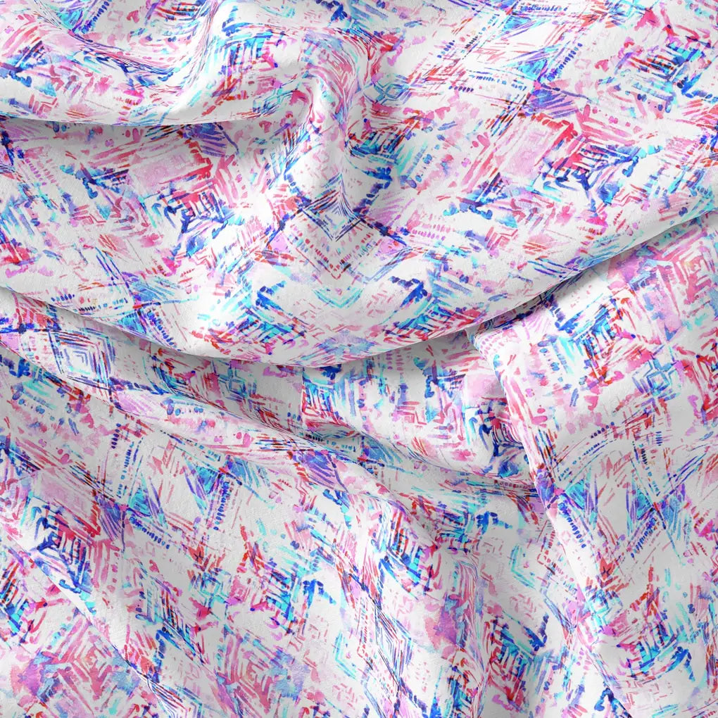 Geometric Colourful Water paint Digital Printed Fabric - Pure Muslin