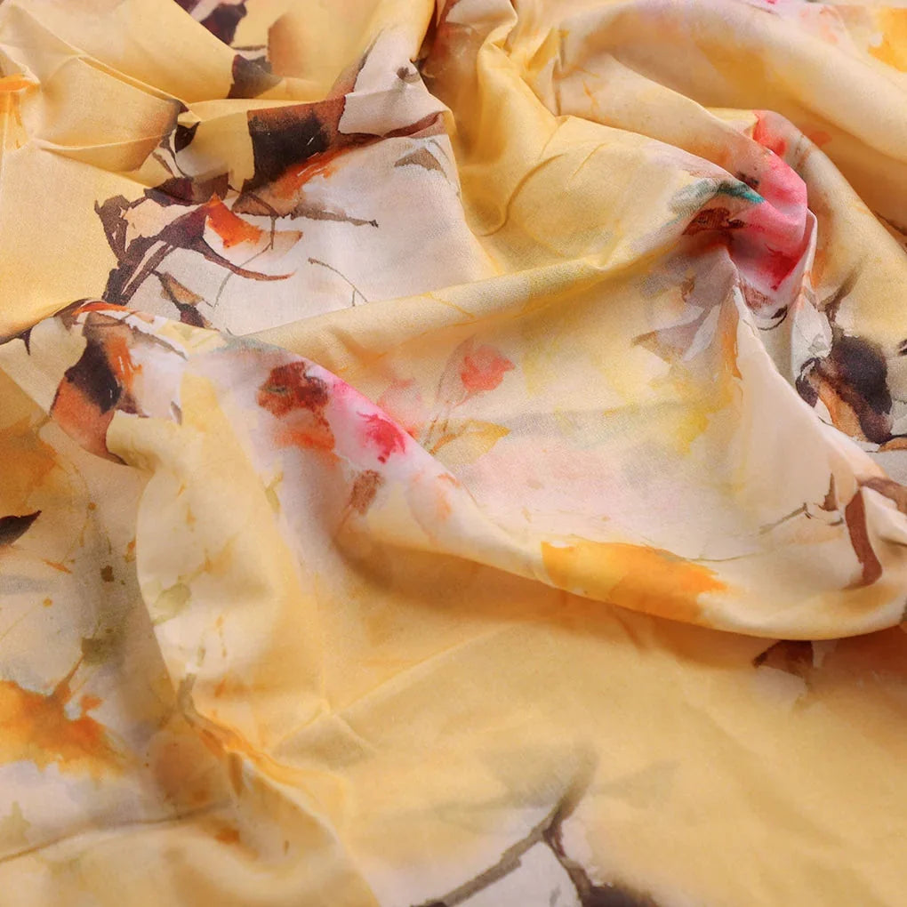Are you looking for the perfect fabric for your next project? Look no further than FAB VOGUE Studio's Coolest Watercolour Paper Art Of Flower Pure Cotton Shirt Printed Fabric! This fabric is made from pure cotton and features a beautiful yellow floral pattern. It's perfect for creating stylish shirts, dresses, and more. With its vibrant colors and soft texture, this fabric is sure to make any project stand out.