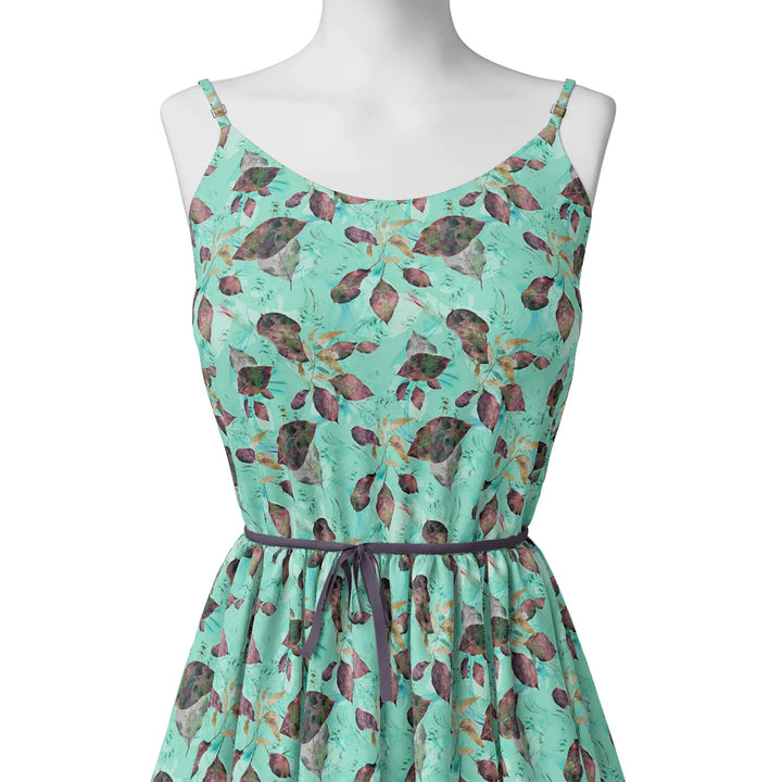 Watercolour Autumnal Leaves With Green Sprinkle Digital Printed Fabric - Pure Cotton