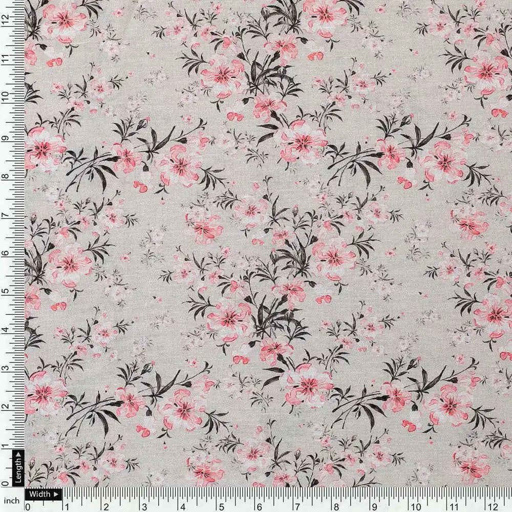 Watercolour Iris Flower With Green Leaves Digital Printed Fabric - Pure Cotton