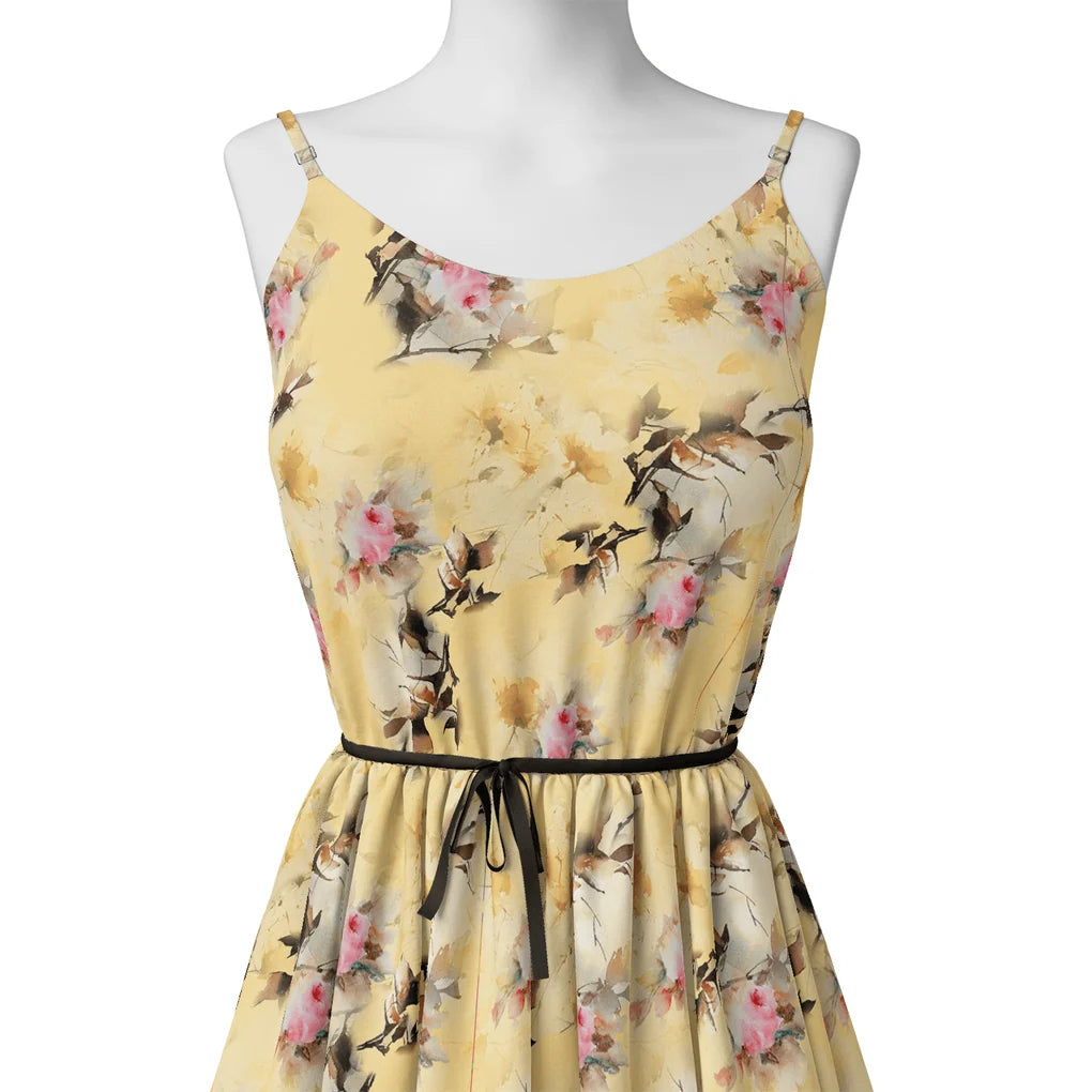 Are you looking for a unique digital printed fabric? Look no further than FAB VOGUE Studio's Coolest Watercolour Paper Art Of Flower Silk Crepe Digital Printed Fabric. Crafted from high-quality polyester, this fabric has a beautiful yellow floral pattern that will add a touch of sophistication to any outfit. With its luxurious silk crepe feel, this fabric is perfect for making dresses, blouses and skirts.
