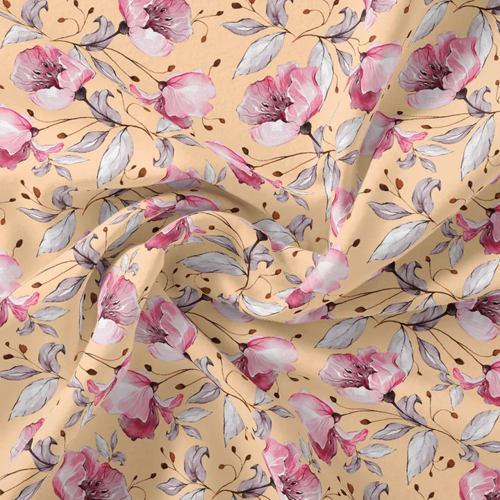Modern Paint Of Leaves With Flower Digital Printed Fabric - Pure Georgette