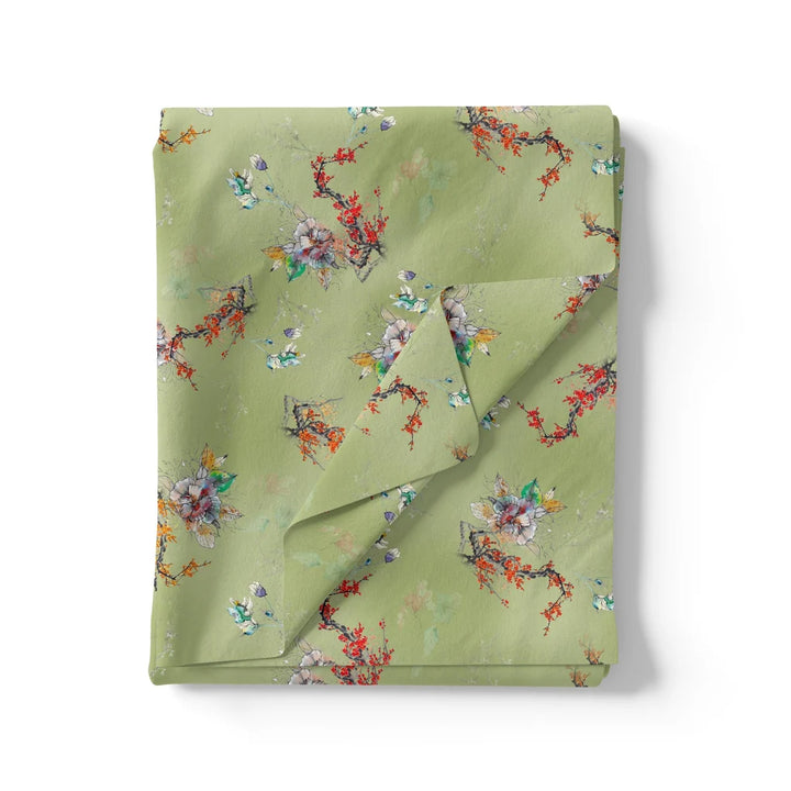 Nature Art Botanical Flower Digital Printed Fabric - Pure Georgette