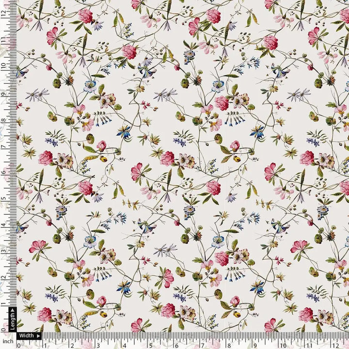 Abstract Colourful Flower Art Digital Printed Fabric - Kora Silk