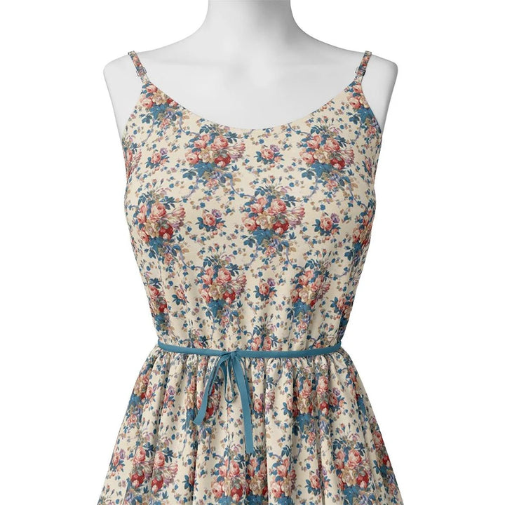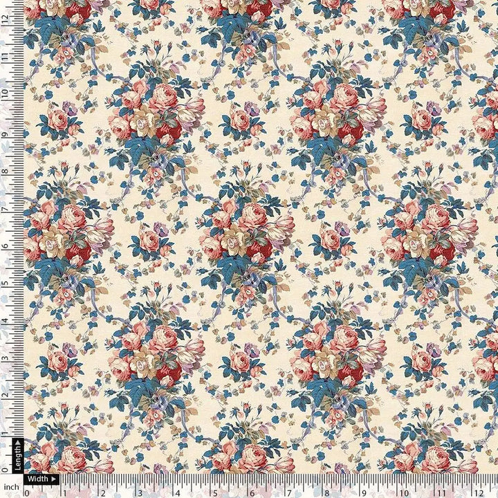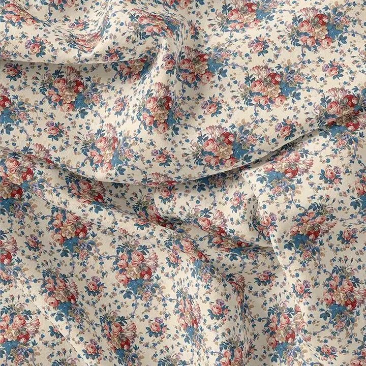Beautiful Ditsy Flowers On Blue Digital Printed Fabric
