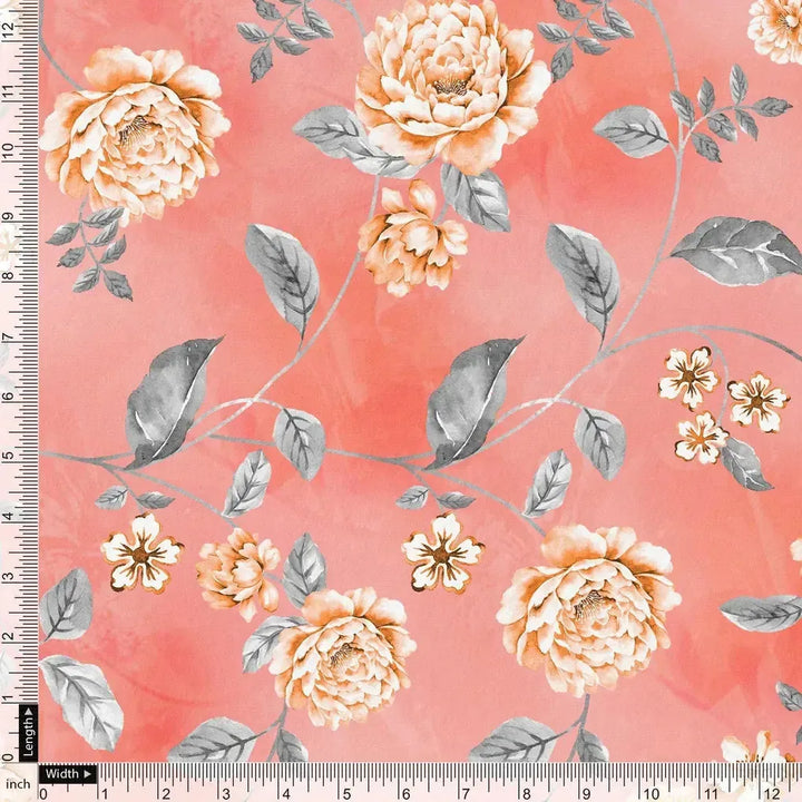 Beautiful Red Base Floral Vine Digital Printed Fabric