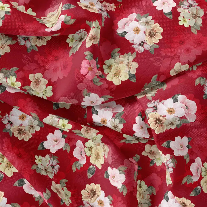 Looking for a beautiful fabric to give your wardrobe a stylish makeover? Look no further than FAB VOGUE Studio's Big Narcissus Multi Colour Flower Weightless Western Wear Printed Fabric. Crafted from lightweight polyester, this eye-catching fabric features a bold floral print in a vibrant red hue. Perfect for creating stylish western wear, this fabric is sure to make a statement.