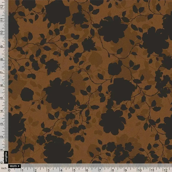 Black And Rustic Look Flower Digital Printed Fabric - Kora Silk