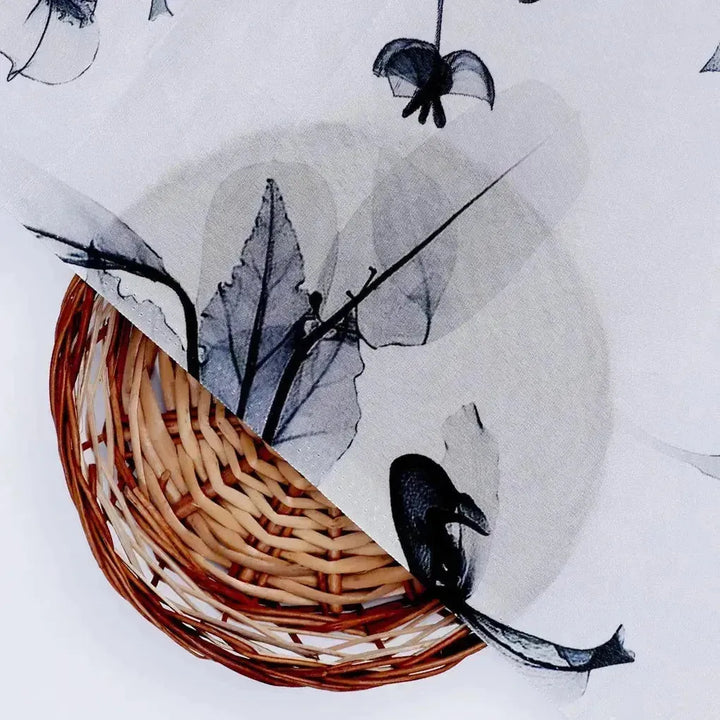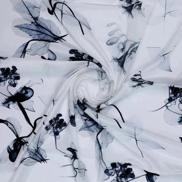 Black Floating Flowers Digital Printed Fabric - Crepe