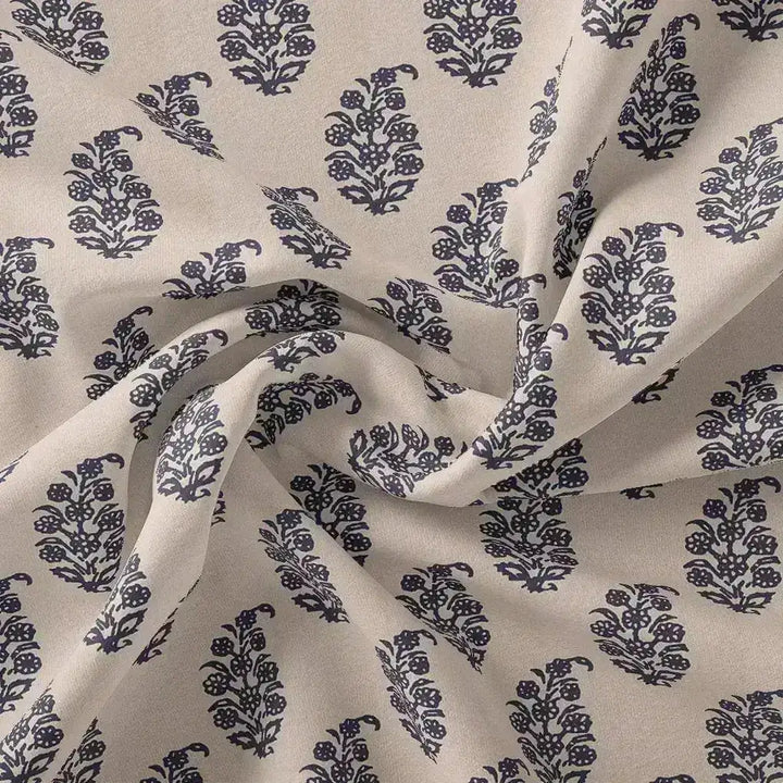 Block Print Motif Digital Printed Fabric - Tusser Silk