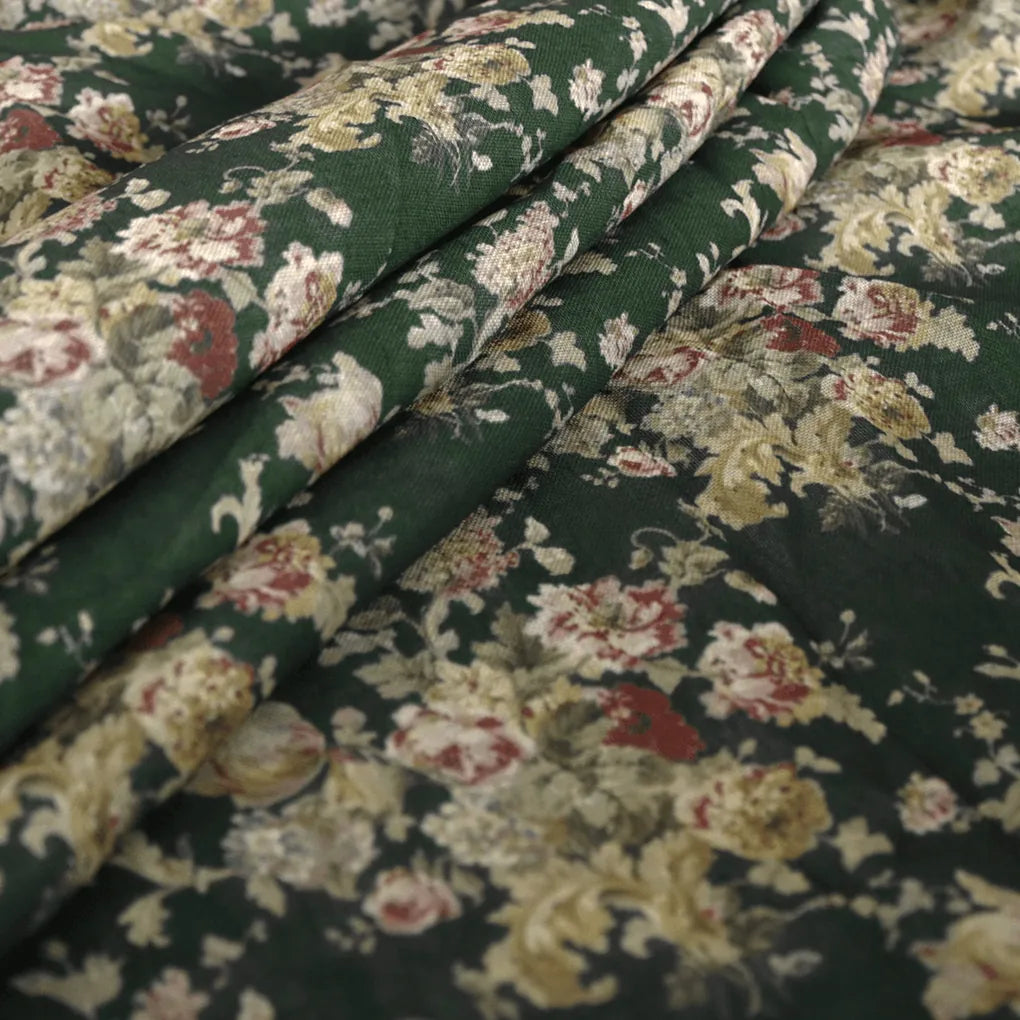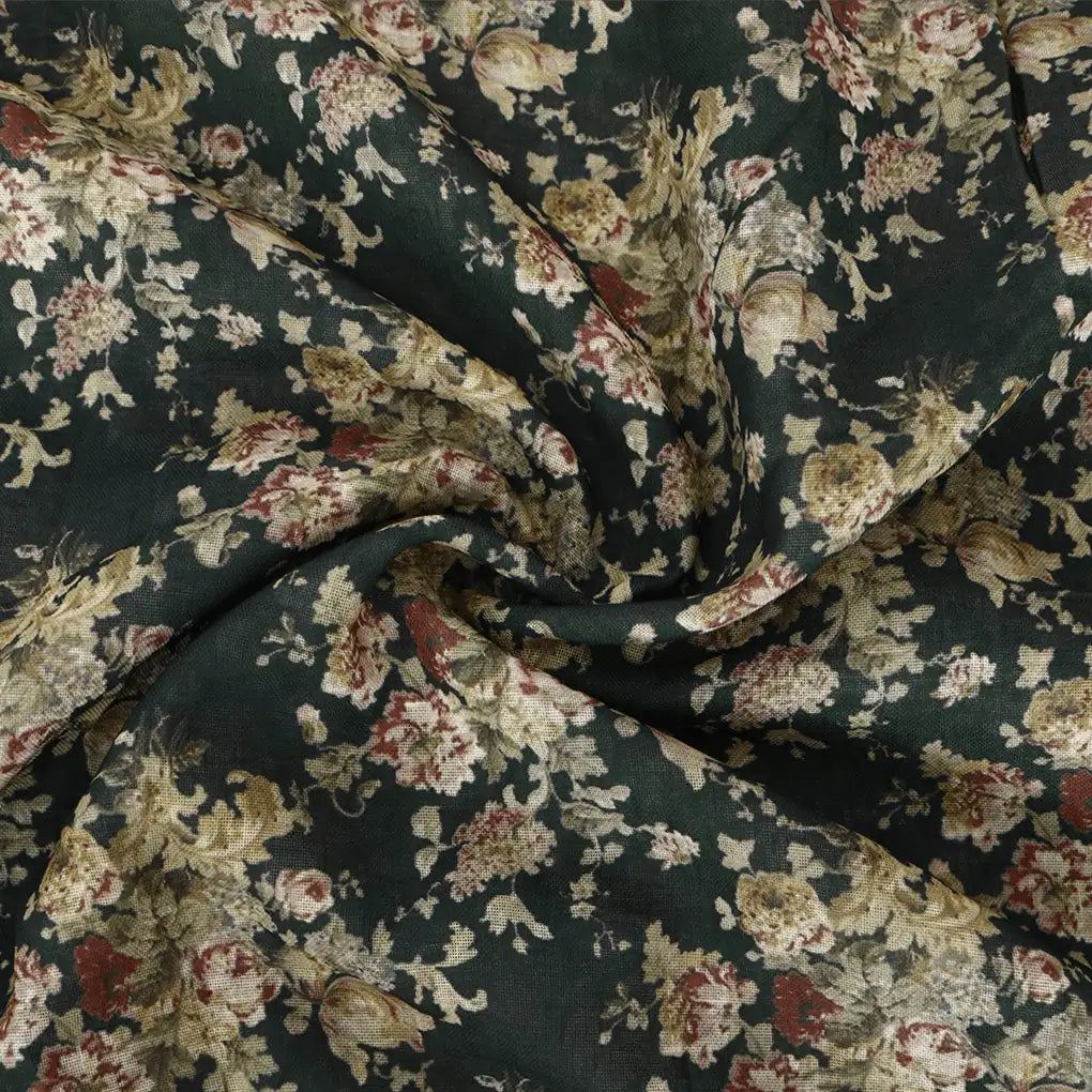 Enhance your wardrobe with this beautiful Botanical Calico Floral Pattern Poly Linen Unstitched Digital Printed Fabric from FAB VOGUE Studio. This fabric is made from polyester and linen, ensuring you a comfortable fit and superior quality. The fabric is digitally printed with a stunning green floral pattern, giving it a unique and stylish look. Buy this fabric from FAB VOGUE Studio and add a touch of elegance to your wardrobe.