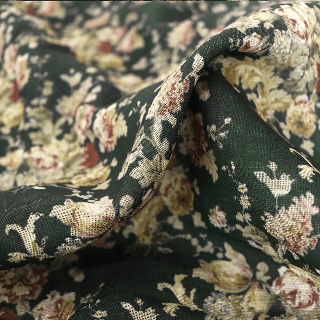 Botanical Calico Floral Pattern Digital Printed Fabric - Linen