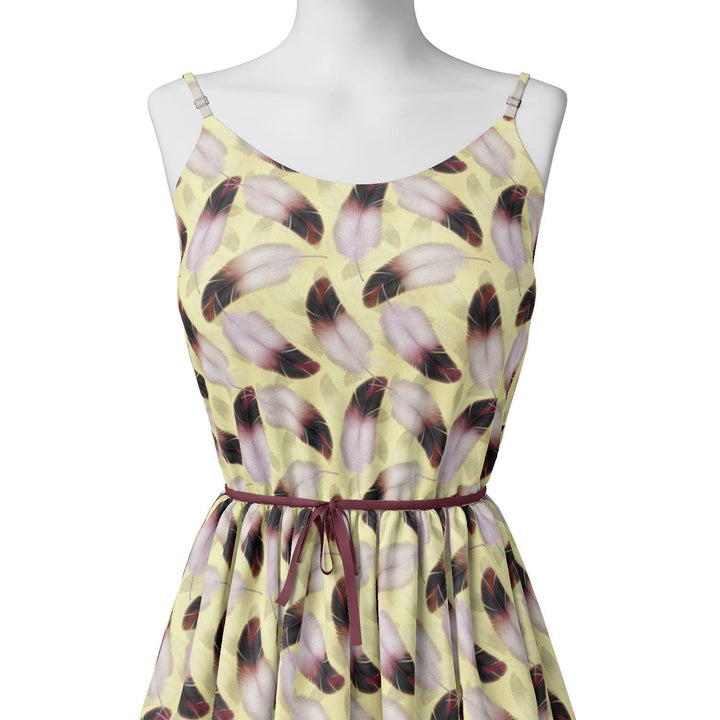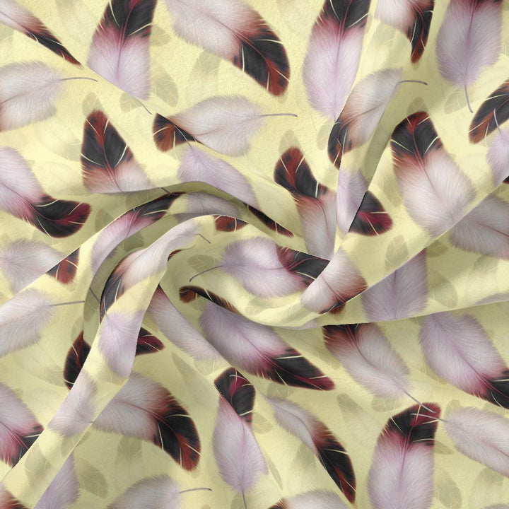 Brown Feather With pastel Yellow Background Digital Printed Fabric