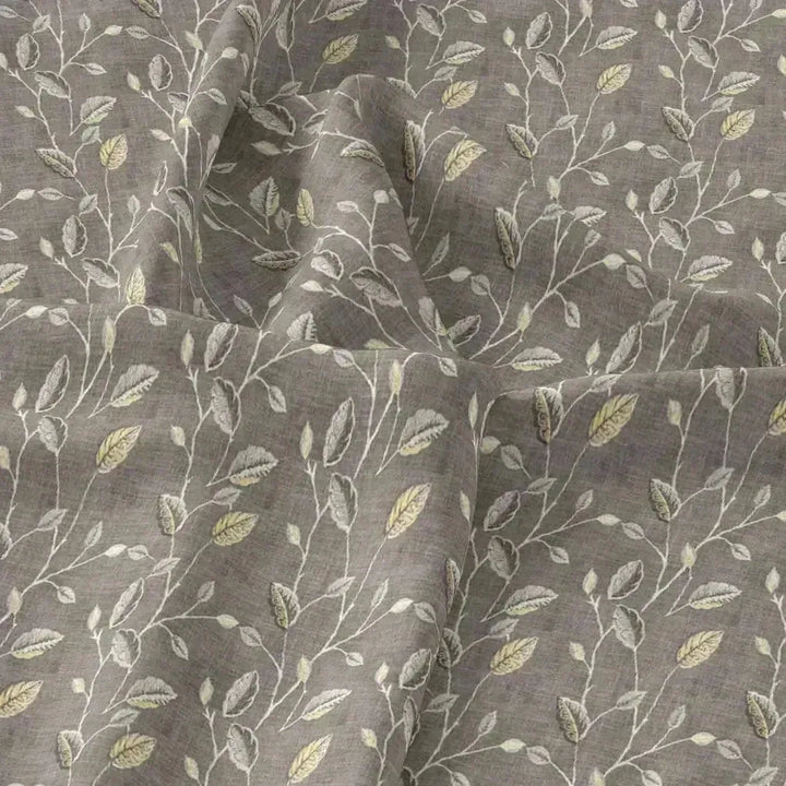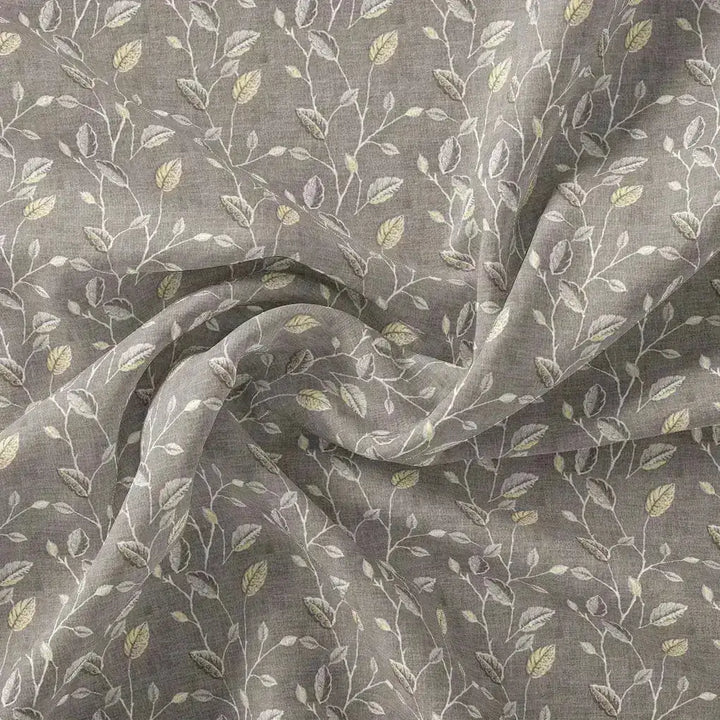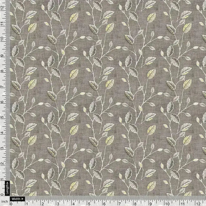 Brown Leaves With Stalk Digital Printed Fabric - Pure Muslin