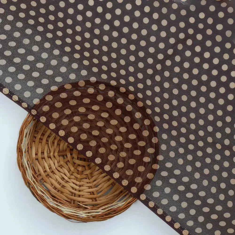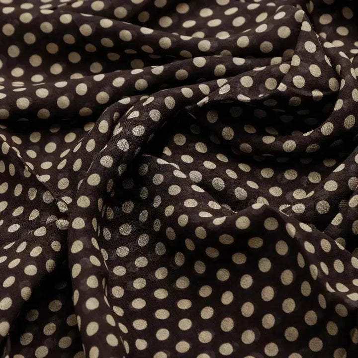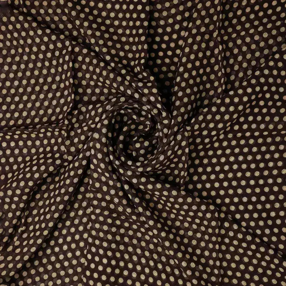Brown Polka Dot Digital Printed Fabric - Pure Georgette