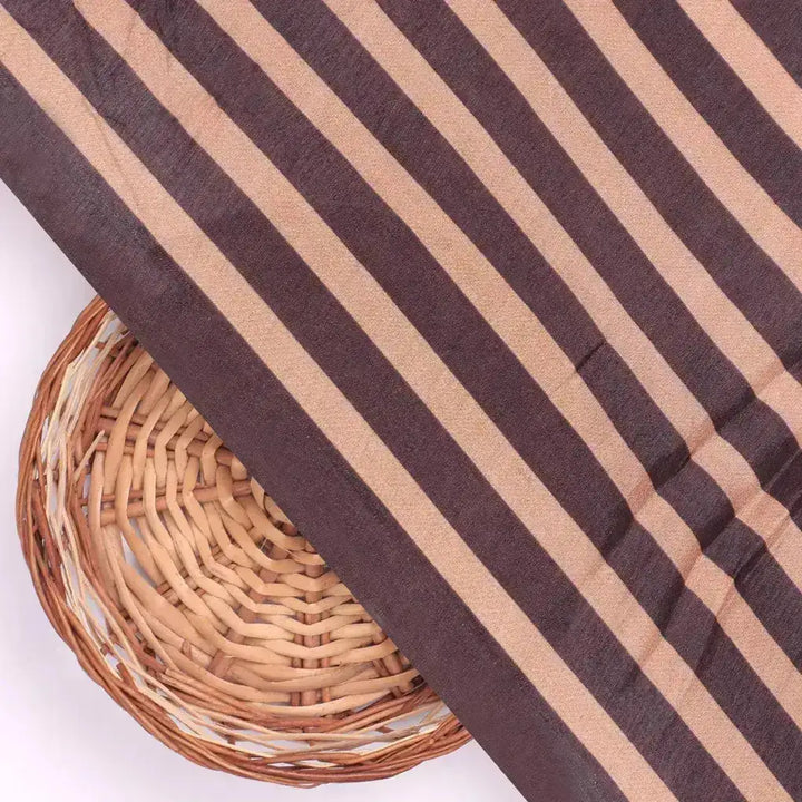 Brown Stripes Digital Printed Fabric - Pure Muslin