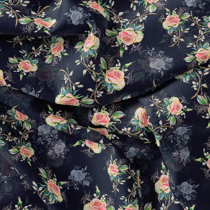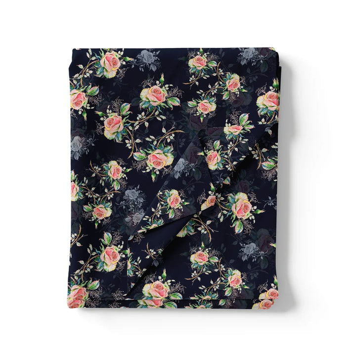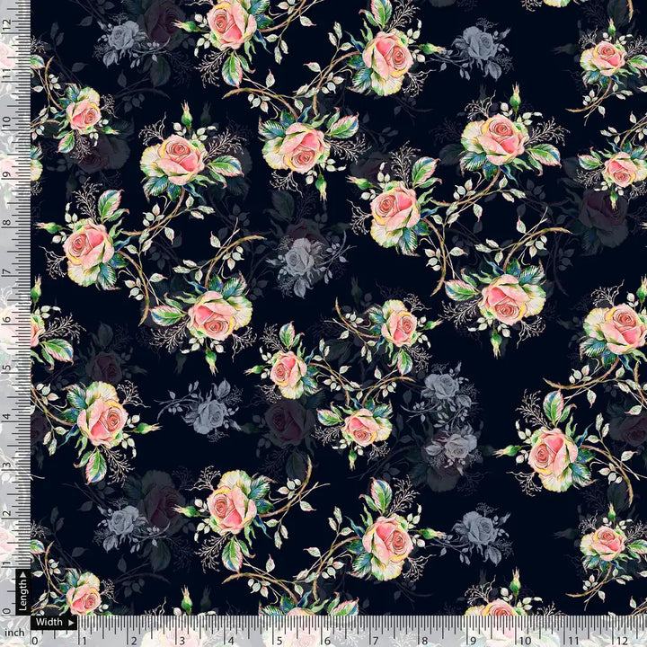 Colourful Roses With Multicolour Branch Digital Printed Fabric