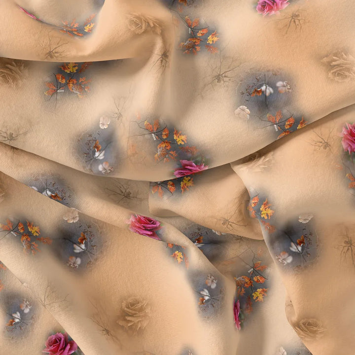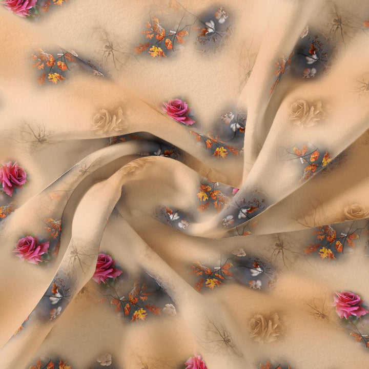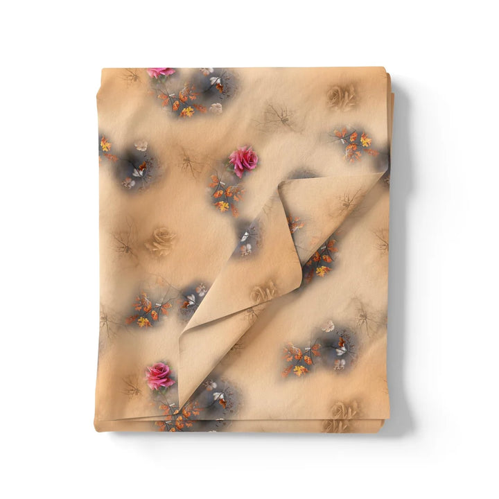 Decorative Roses With Autumn Buds Art Digital Printed Fabric