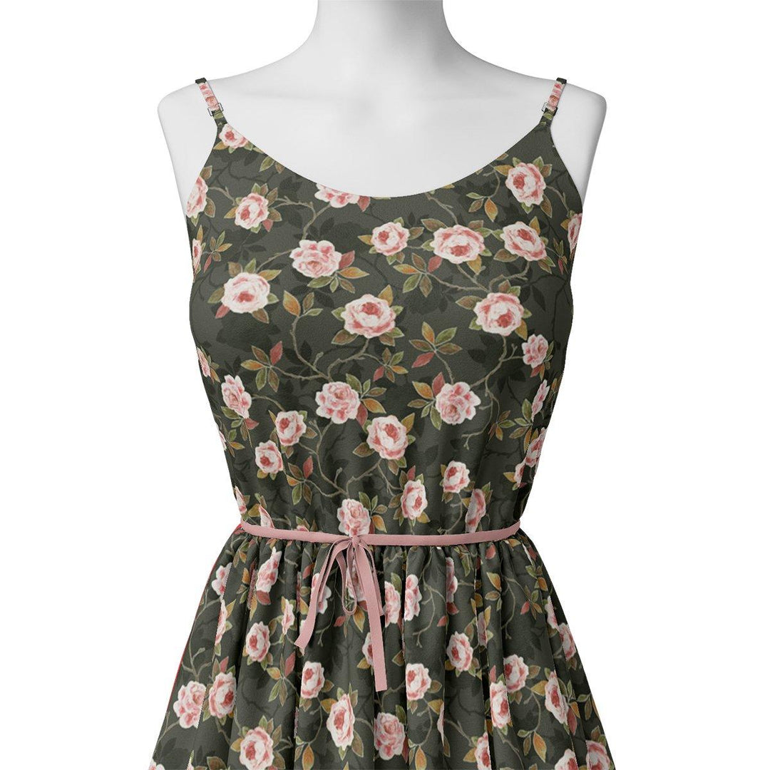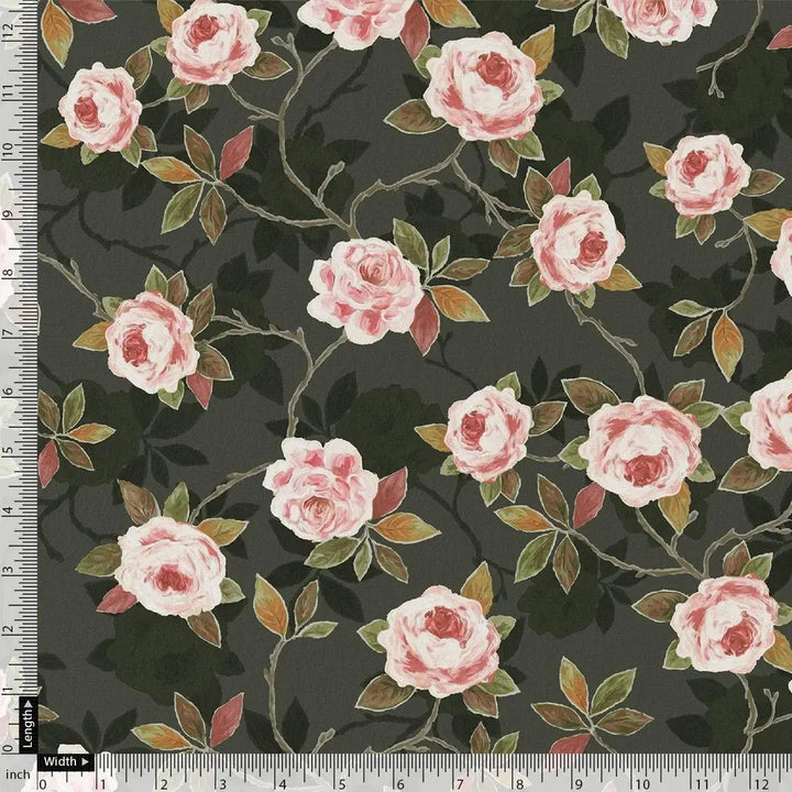 Ditsy Pink Rose With Green Leaves Digital Printed Fabric