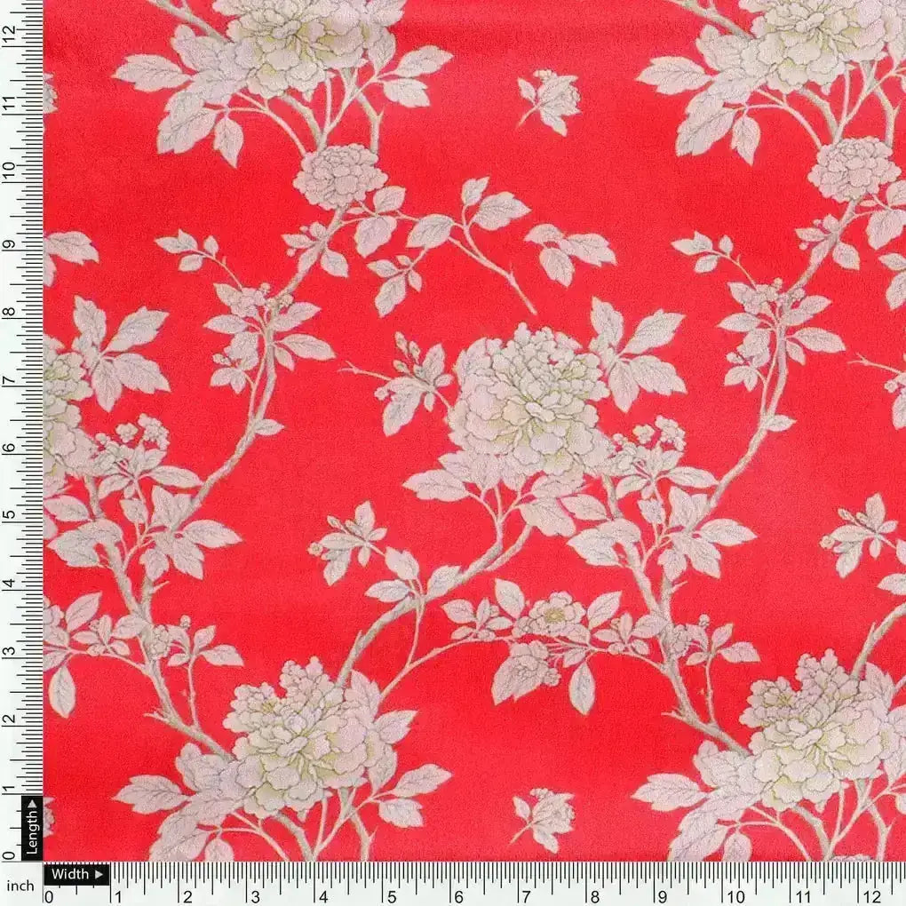 Flower Bunch On Dreamy Orange Digital Printed Fabric - Crepe