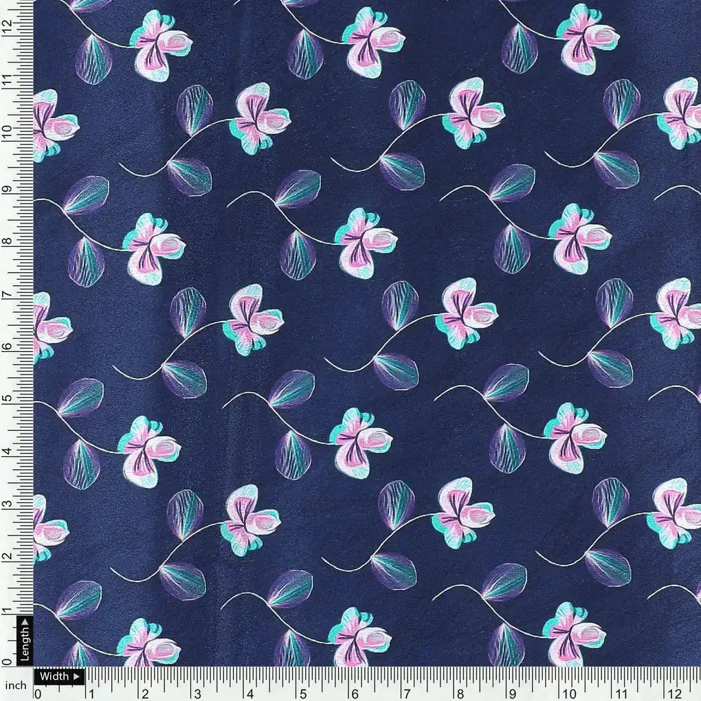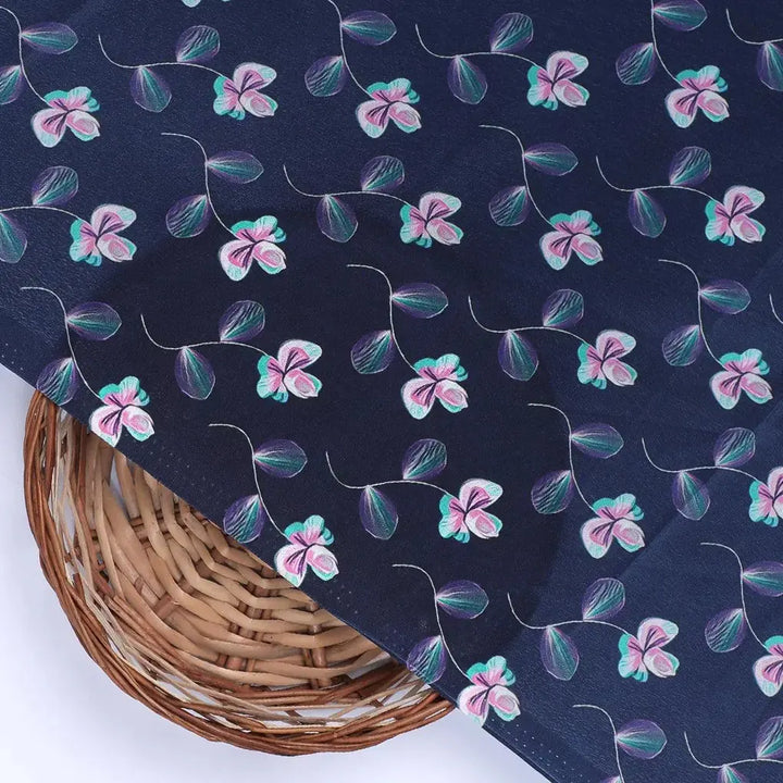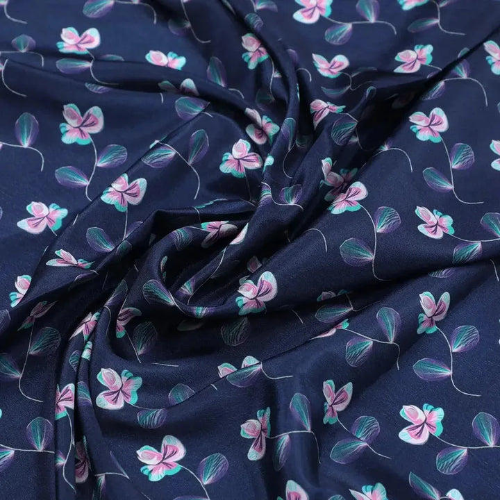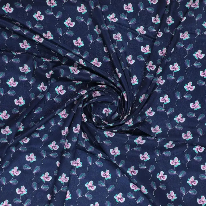 Flowers Floating over Blue Base Digital Printed Fabric