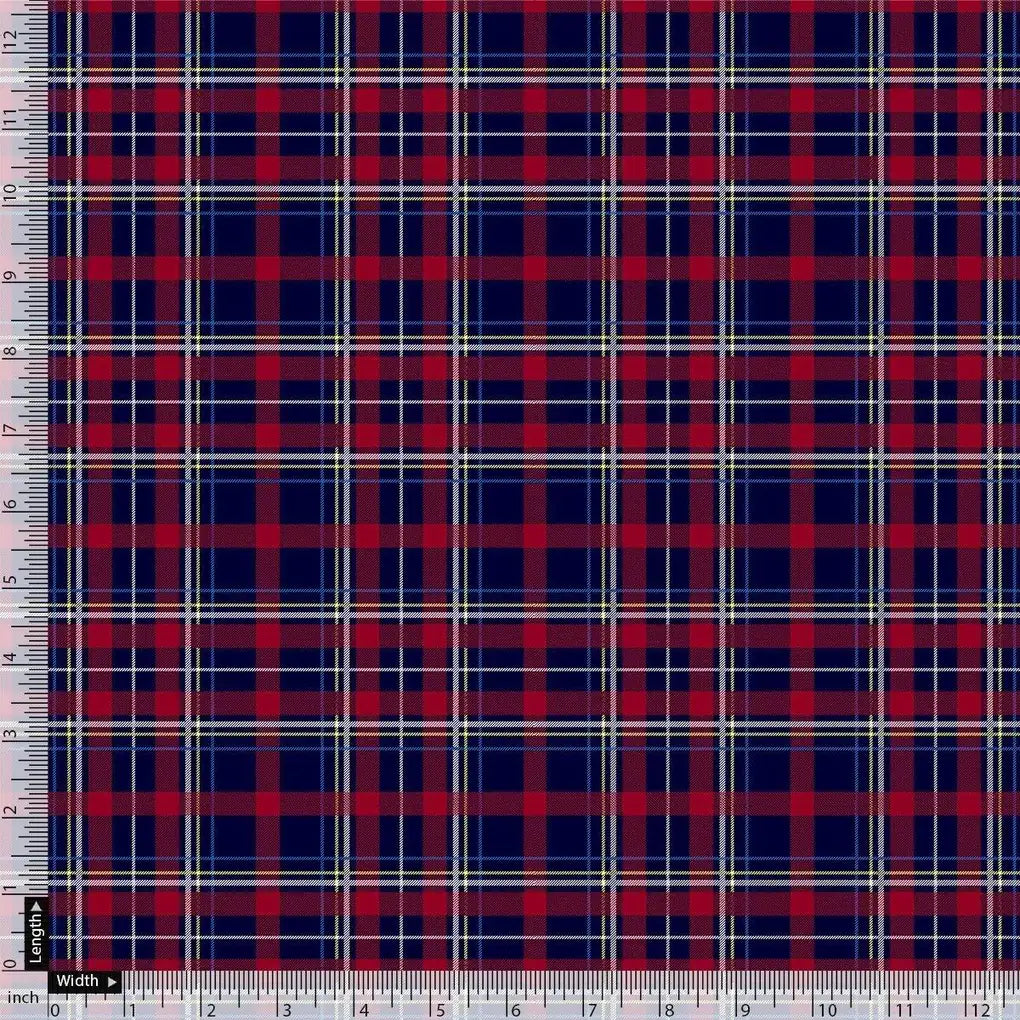 Gingham Pattern With Red And Blue Colour Digital Printed Fabric - Rayon