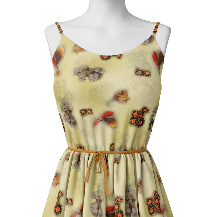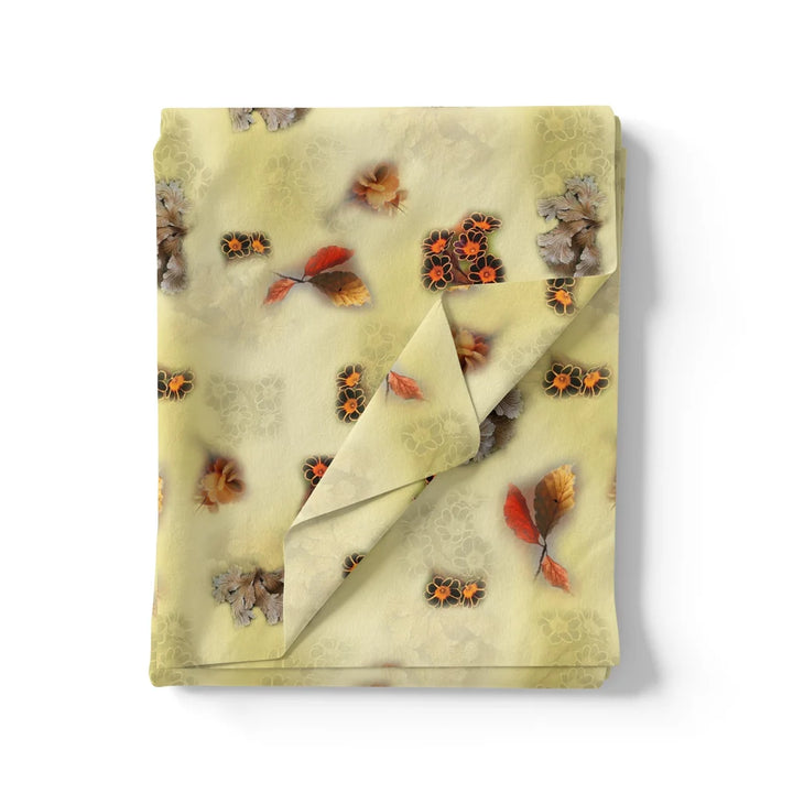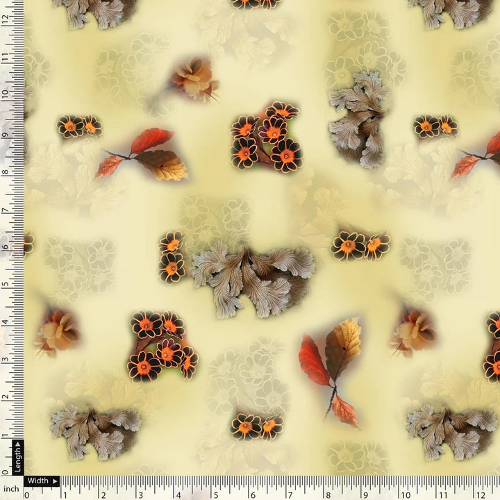 Golden Leaves With Black Sunflower Digital Printed Fabric - Japan Satin