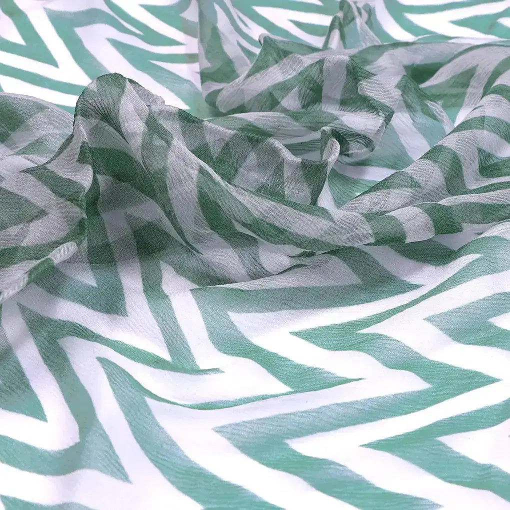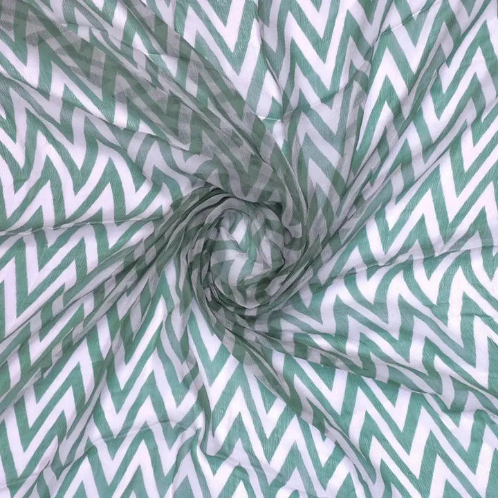 Discover the perfect blend of style and comfort with the Green Chevron Pattern Pure Chiffon Western Wear Printed Fabric from FAB VOGUE Studio. Crafted from pure chiffon and Bemberg quality, this digital printed fabric is perfect for creating fashionable western wear. The chevron, zigzag, and leheriya patterns add a touch of elegance to the fabric, making it an ideal choice for your wardrobe. Shop now at FAB VOGUE Studio and get the best deals.