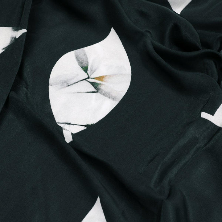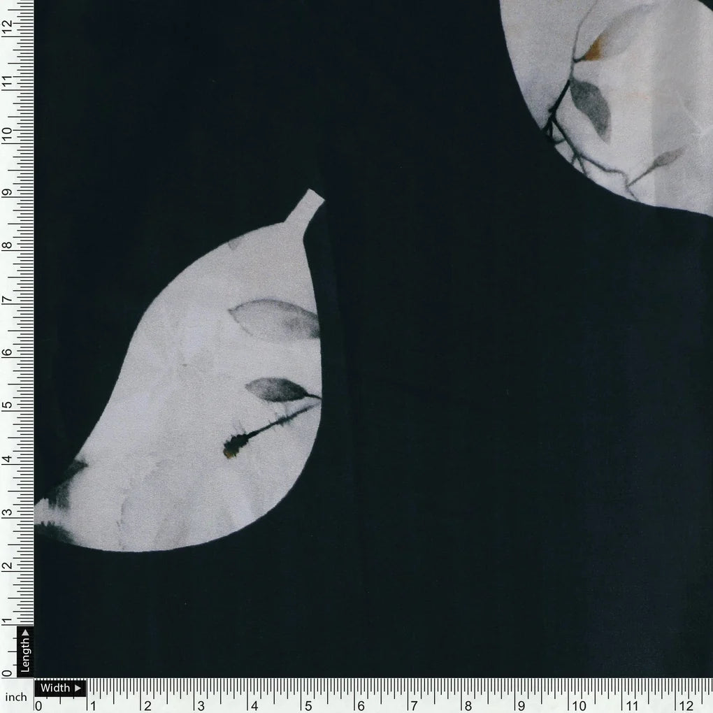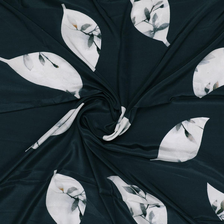 Leaves Print On Dark Grey Base Digital Printed Fabric