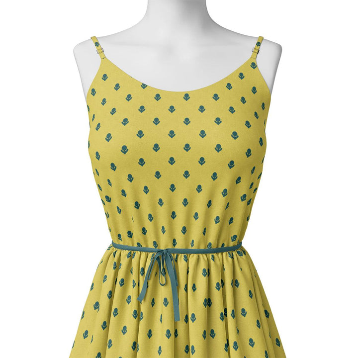 Lemon Yellow Small And Single Motif Allover Digital Printed Fabric - Pure Chinon