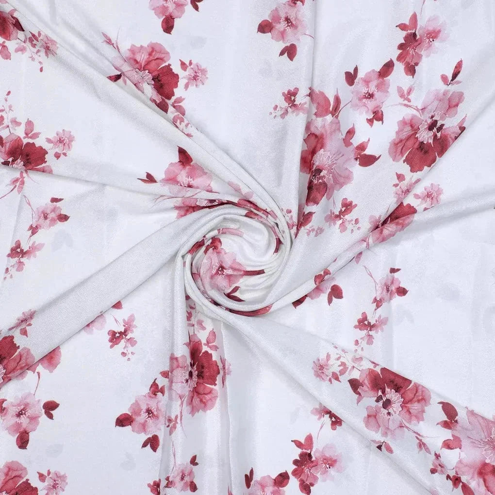 Maroon Flower Bunch Digital Printed Fabric - Crepe